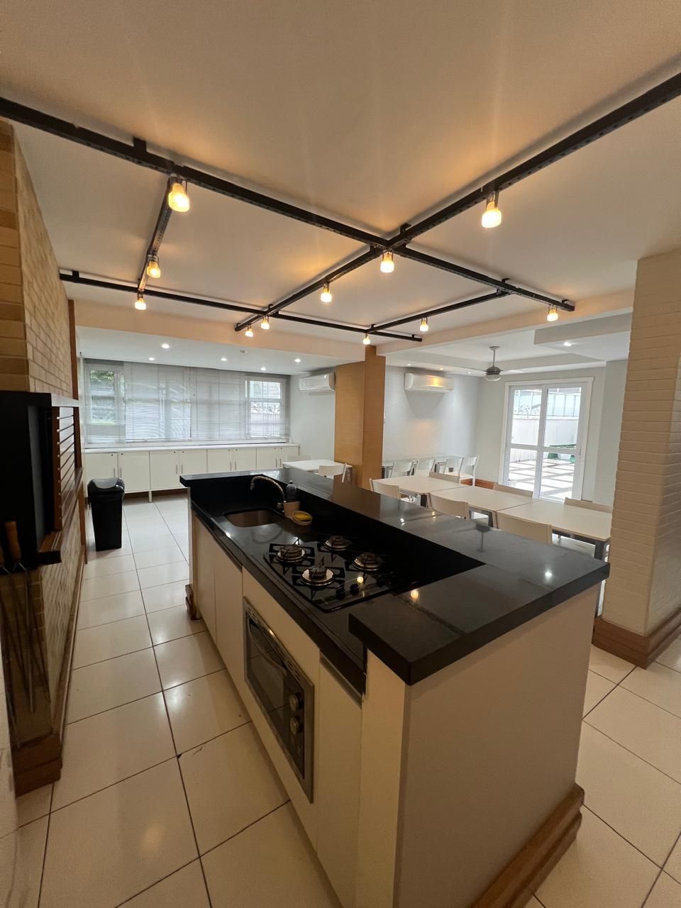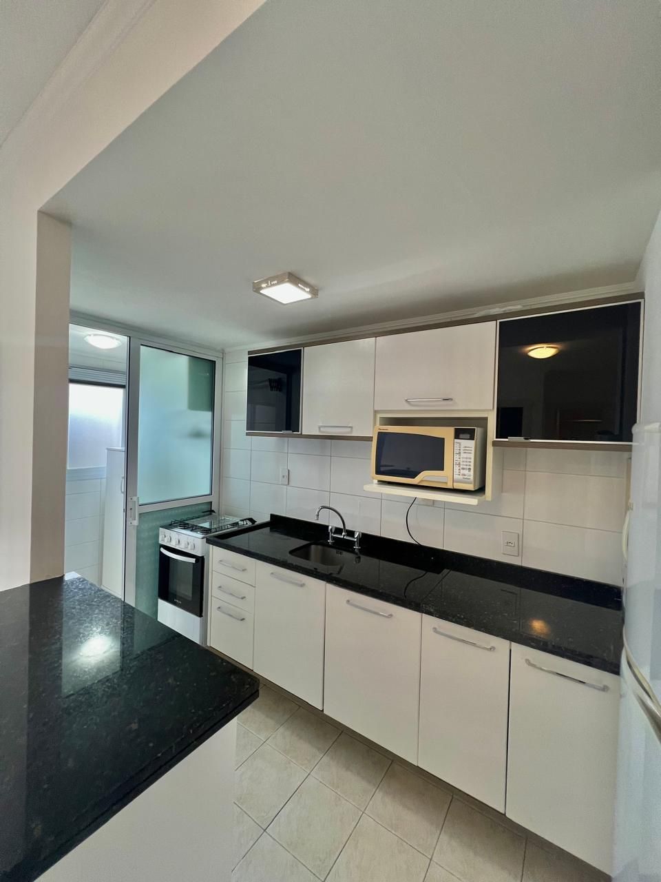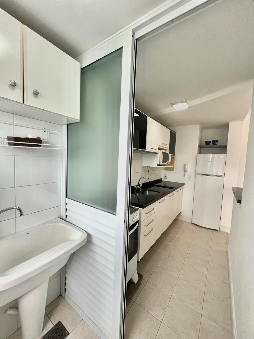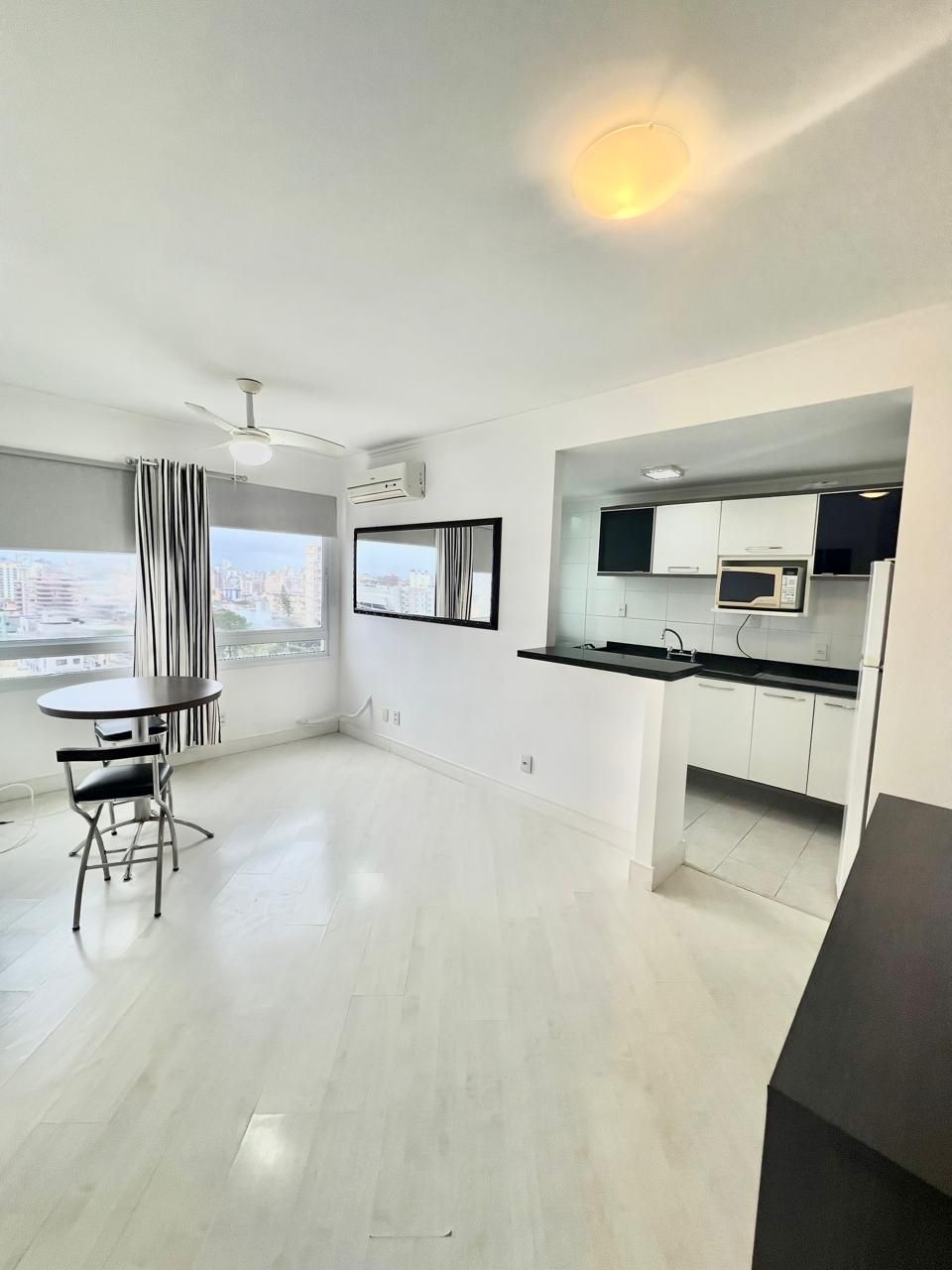 O imóvel possui cozinha americana integrada ao living, proporcionando um ambiente moderno, funcional e perfeito para receber. Conta ainda com banheiro em estilo americano, com acesso prático e inteligente, otimizando o espaço no dia a dia.