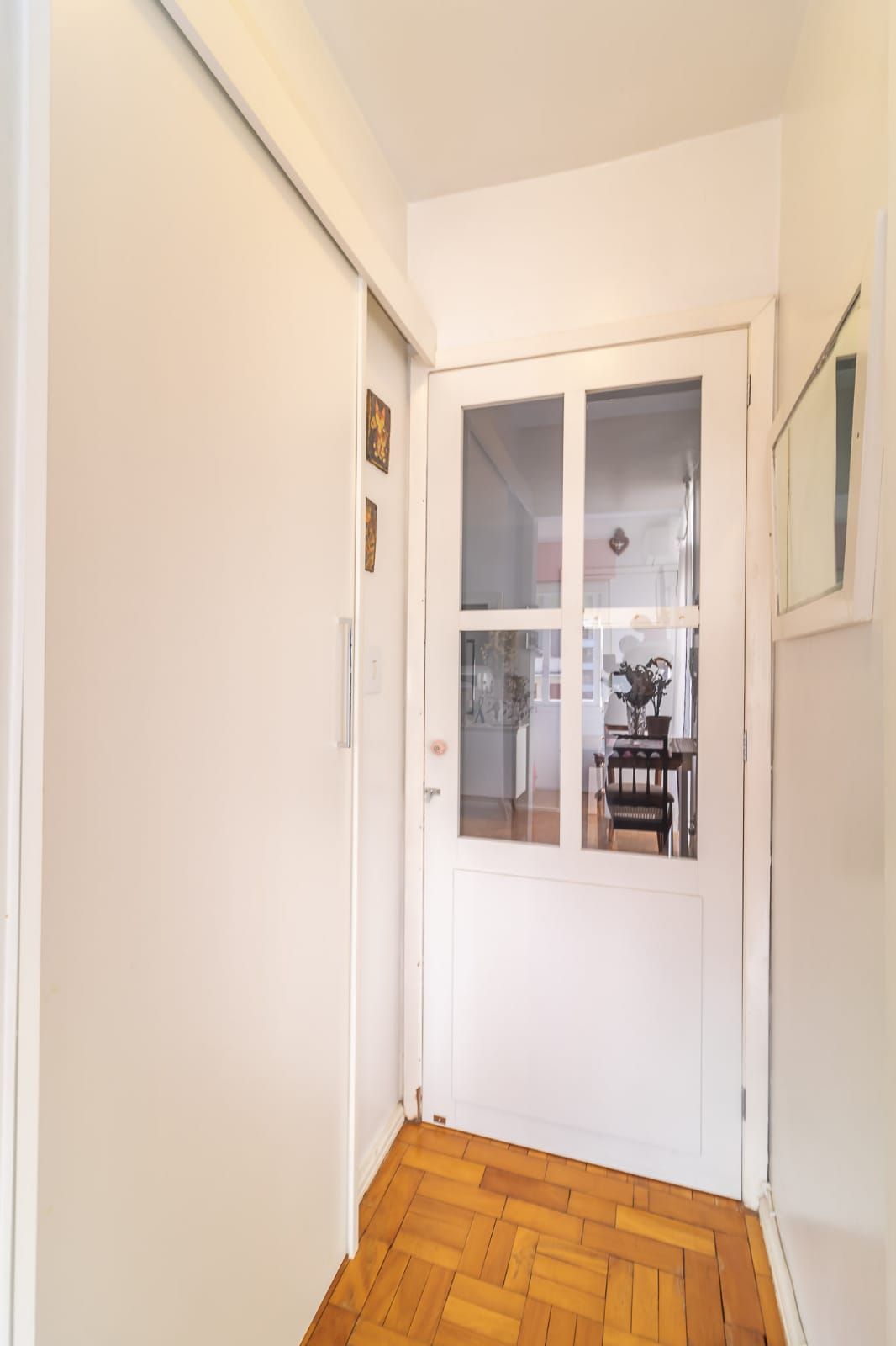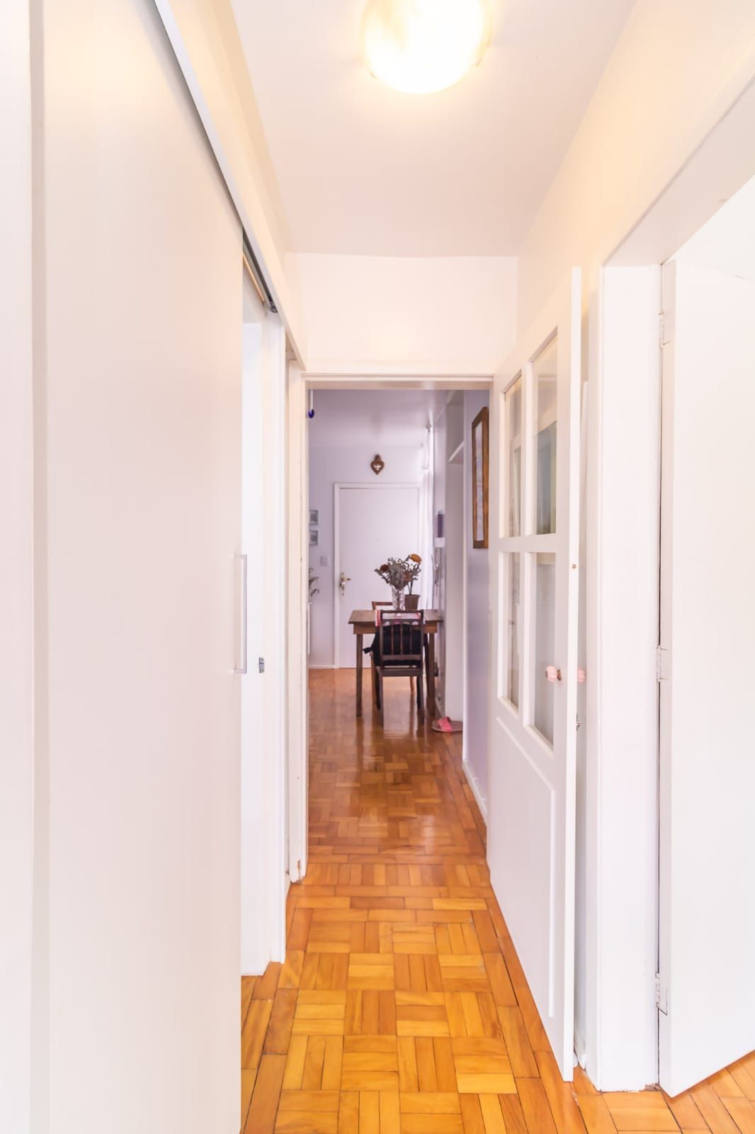 Ampla e iluminada, a sala é ideal para momentos de descanso ou convivência. O piso de parquet bem conservado e a entrada generosa de luz natural criam um ambiente acolhedor e funcional.