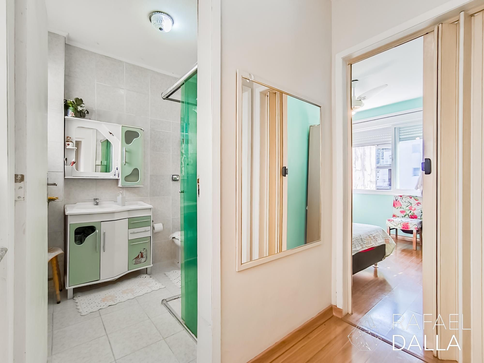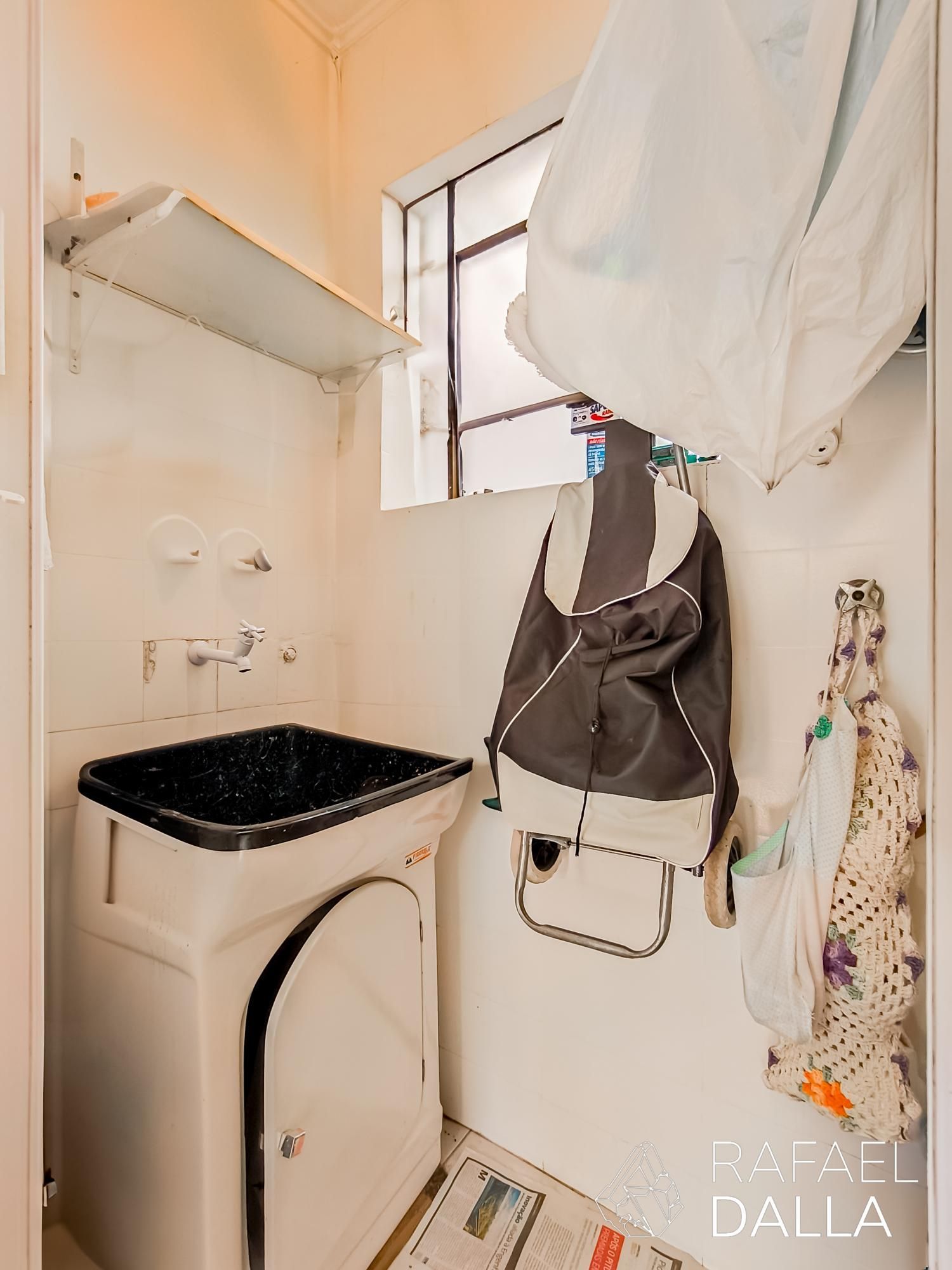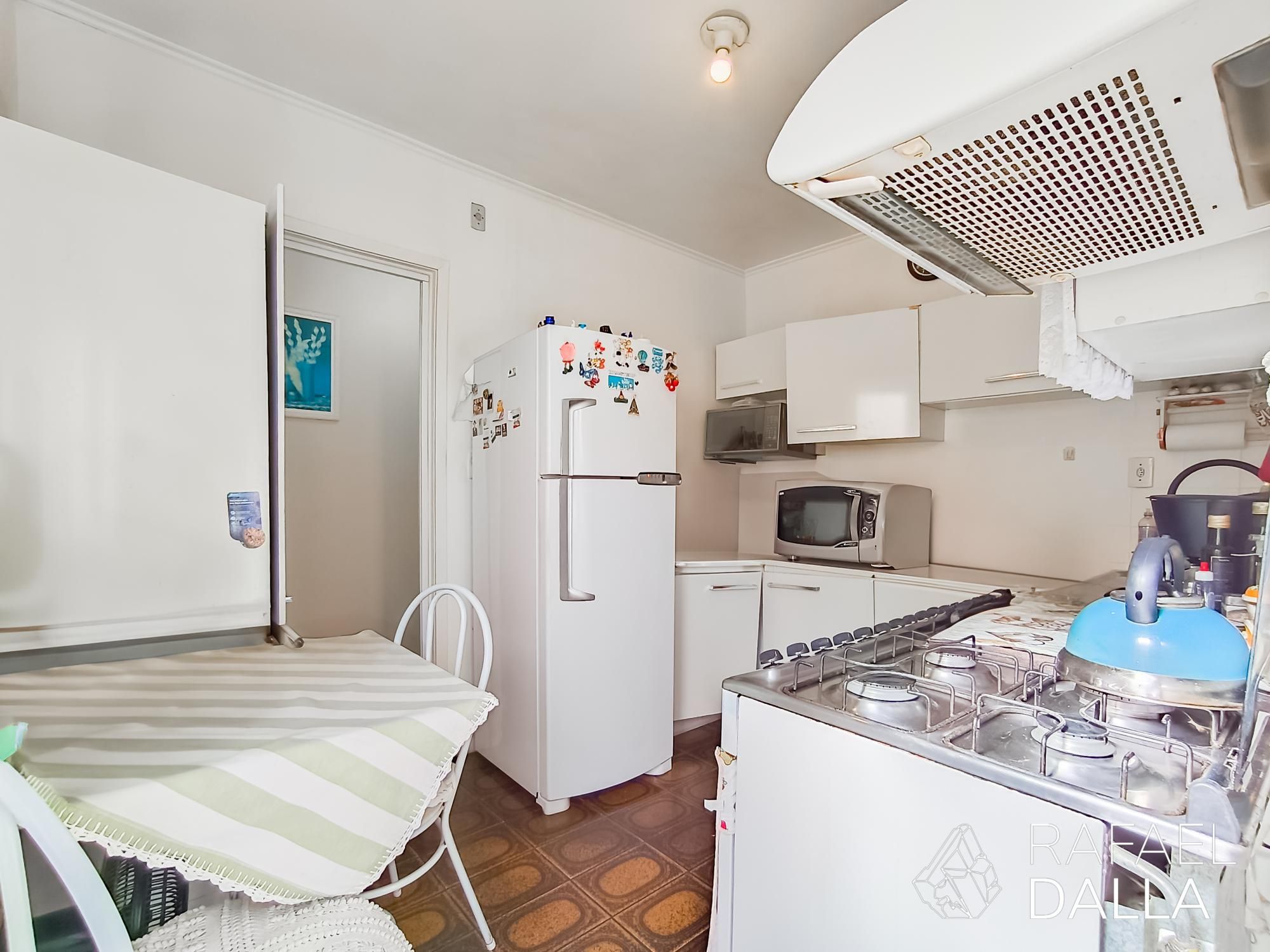 Apartamento com cerca de 80m² privativos, distribuído em dois dormitórios amplos, living para dois ambientes, banheiro social com ventilação natural e banheiro auxiliar. A cozinha tem bom tamanho e ligação com a antiga dependência de empregada, hoje transformada em uma área de serviço funcional. A vista dos quartos é permanente, voltada para o sol da manhã e para a Escola Olinto de Oliveira, garantindo luminosidade e vista definitiva. O piso é laminado e o imóvel está em ótimo estado de conservação. Prédio pequeno, com poucas unidades e baixo custo condominial.