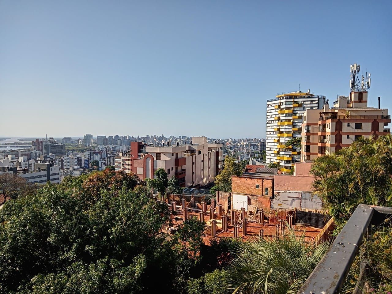 O terraço é um convite para relaxar e apreciar a paisagem, belíssima vista para o Rio Guaíba, enquanto o jardim e as árvores frutíferas proporcionam um refúgio tranquilo em meio à agitação da cidade.