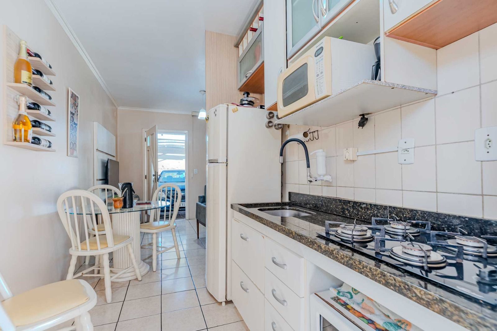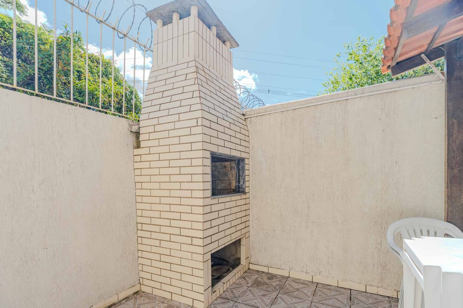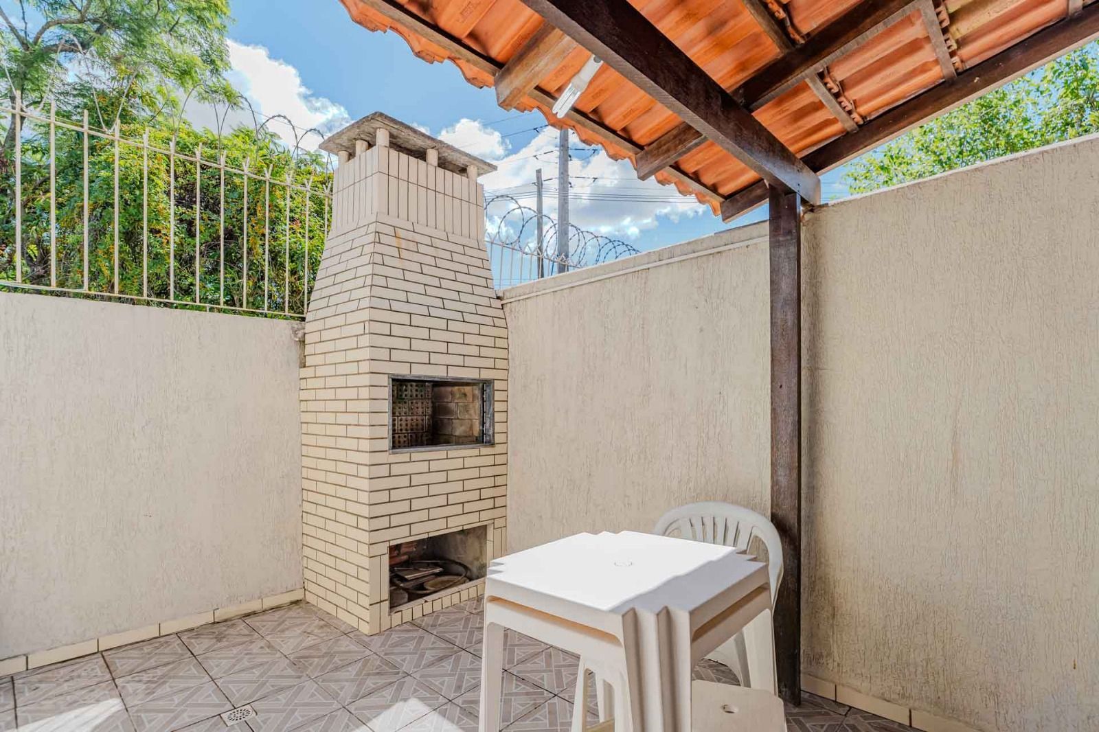 Composta de sala/cozinha , banheiro social, 2 dormitórios, pátio com churrasqueira + área de serviço coberta, sol da manhã.