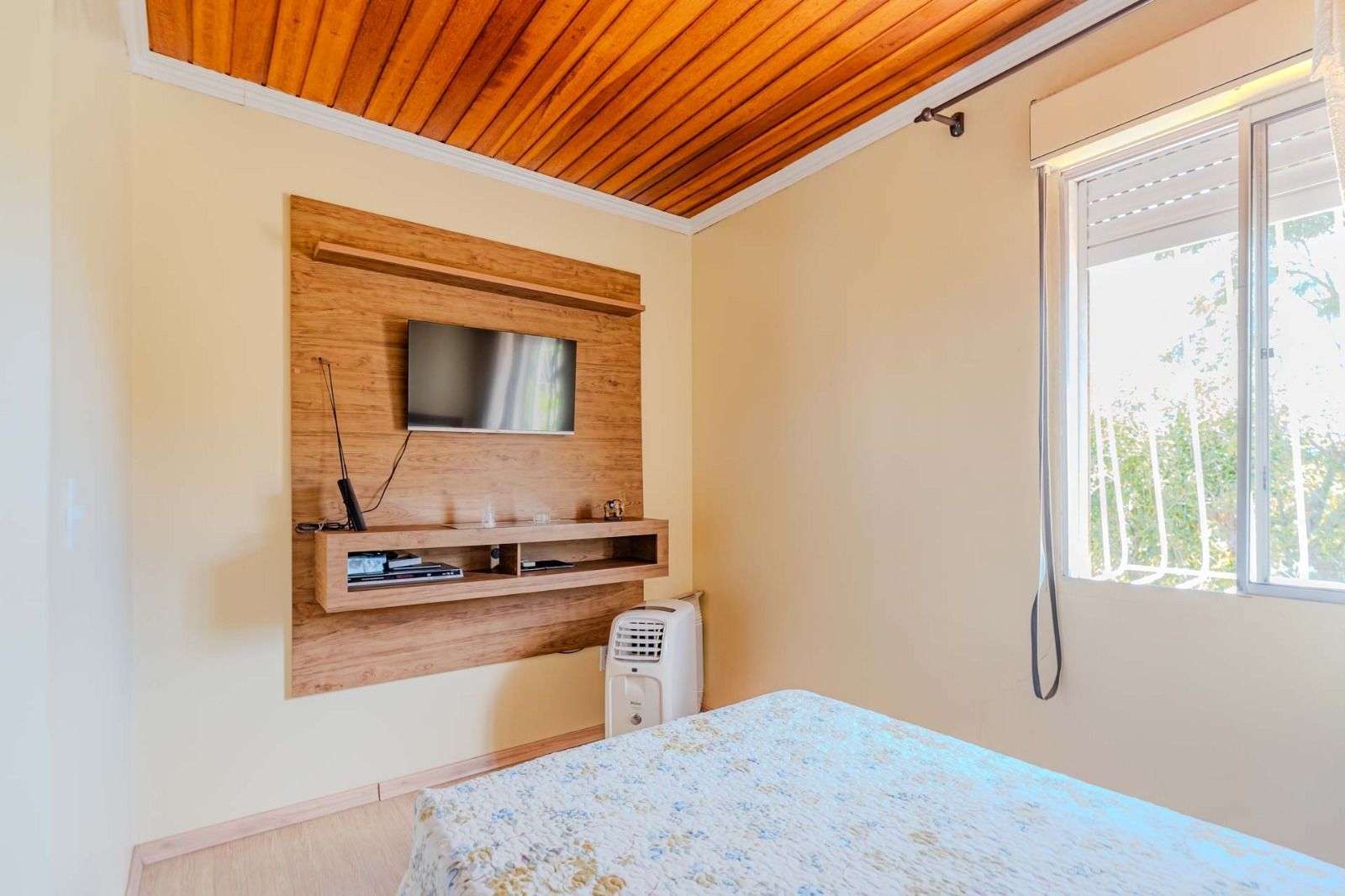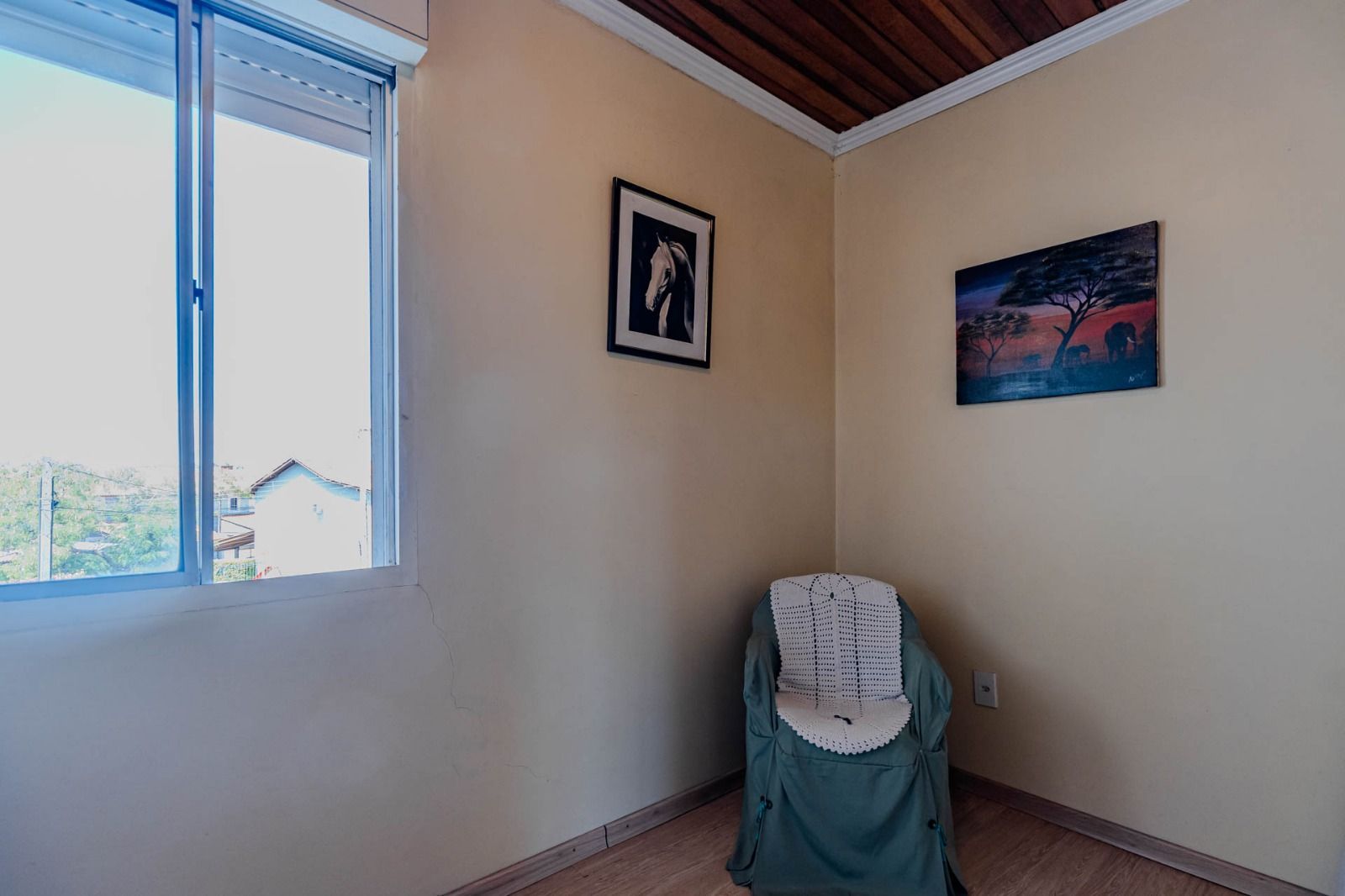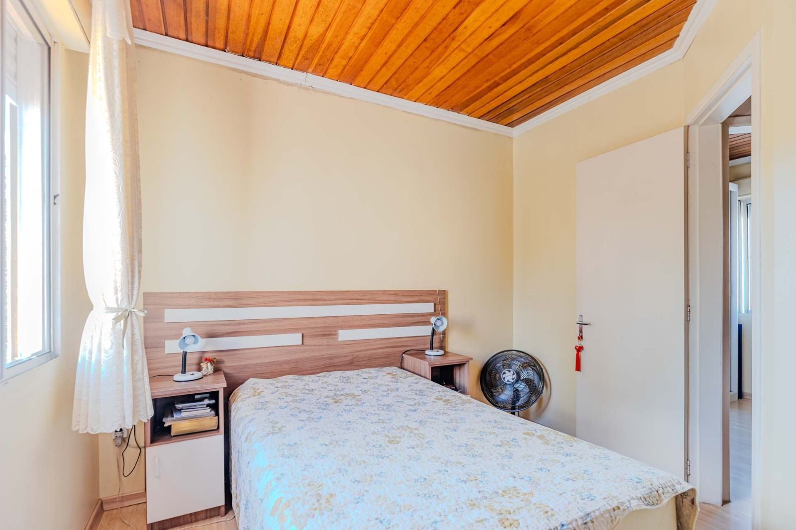 Composta de sala/cozinha , banheiro social, 2 dormitórios, pátio com churrasqueira + área de serviço coberta, sol da manhã.