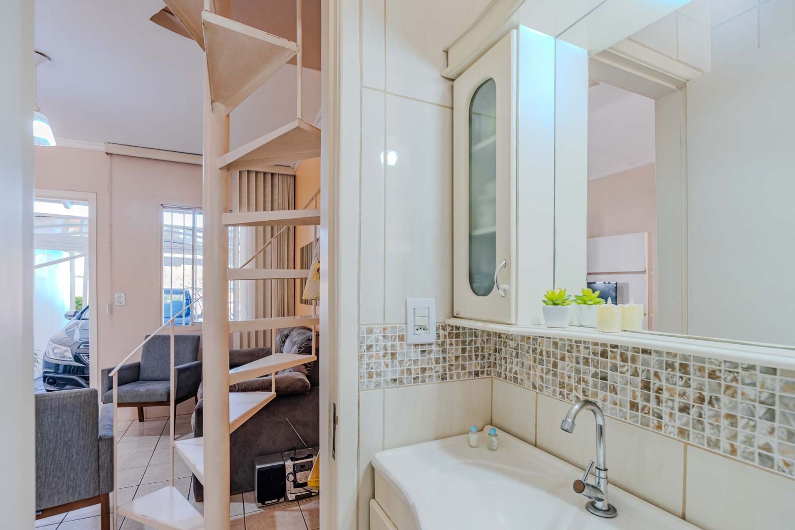 Casa sobrado com 2 dormitorios, churrasqueira e estacionamento para 3 carros, sendo 1 coberto.