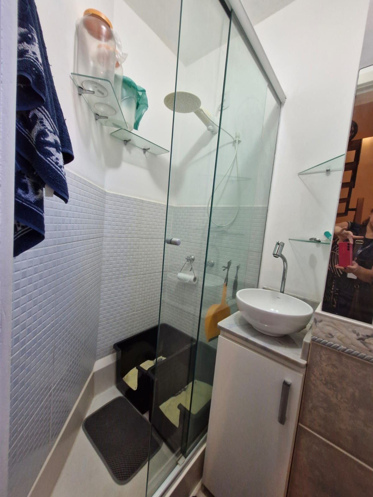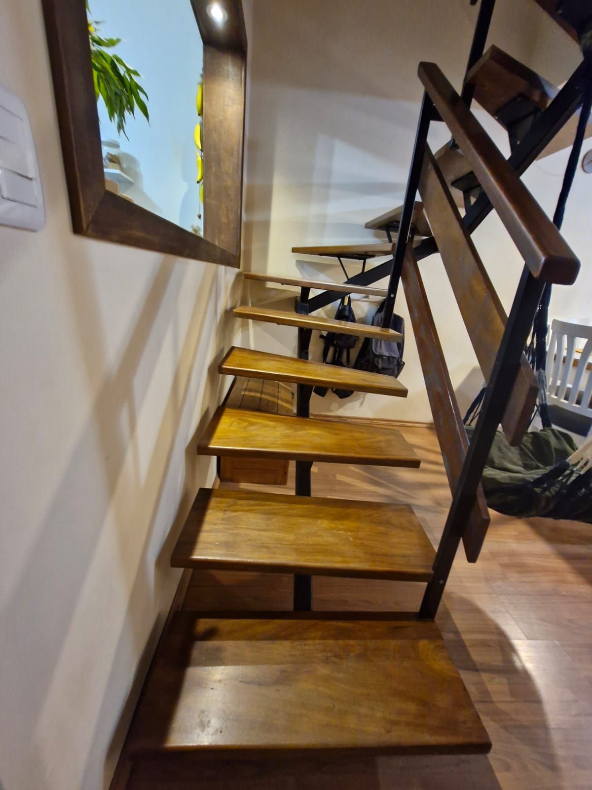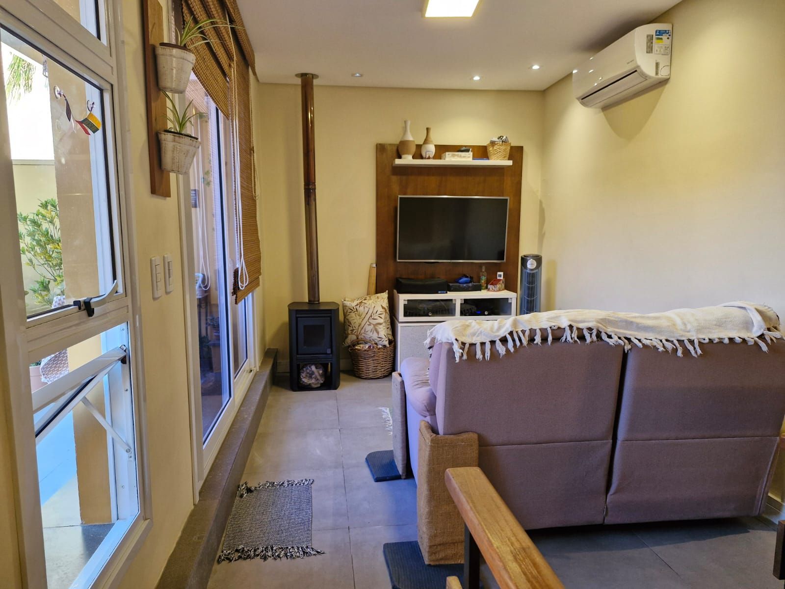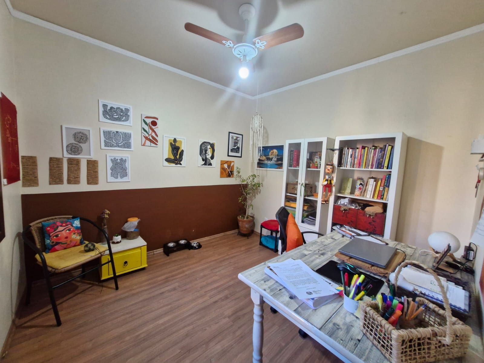 Terceiro pavimento, com terraço, estar íntimo com calefator e mais um dormitório, que está sendo usado como escritório.