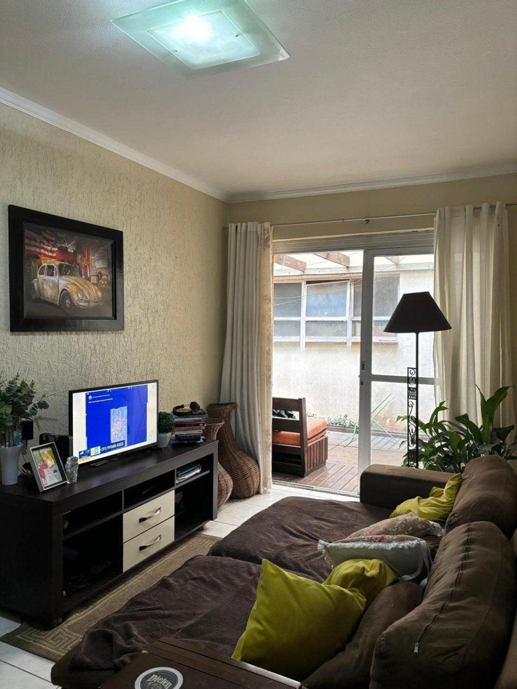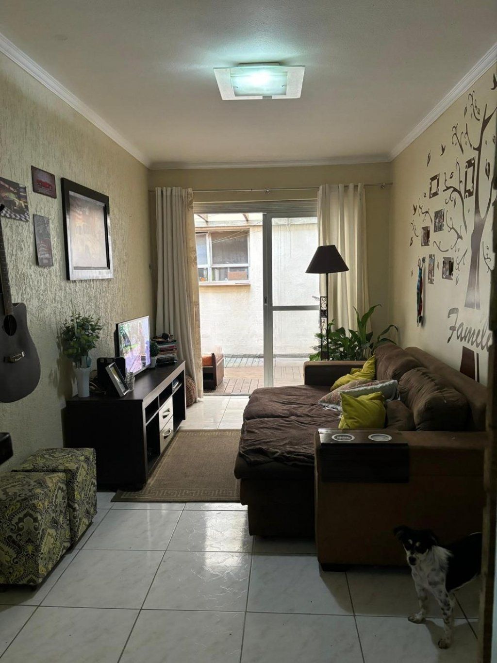 Apartamento com sala ampla, janelas grandes, bem iluminada e ventilada, piso cerâmico.
