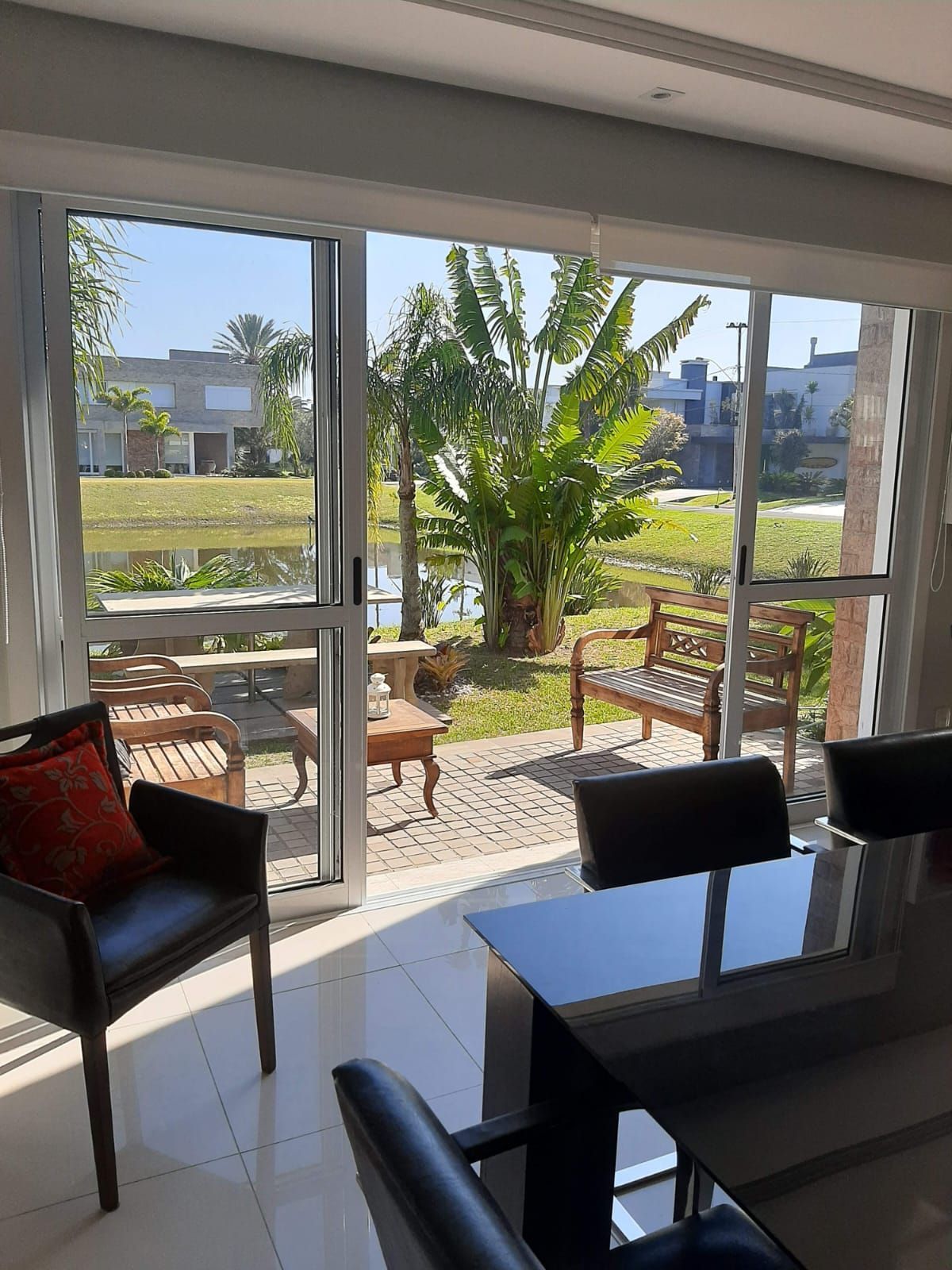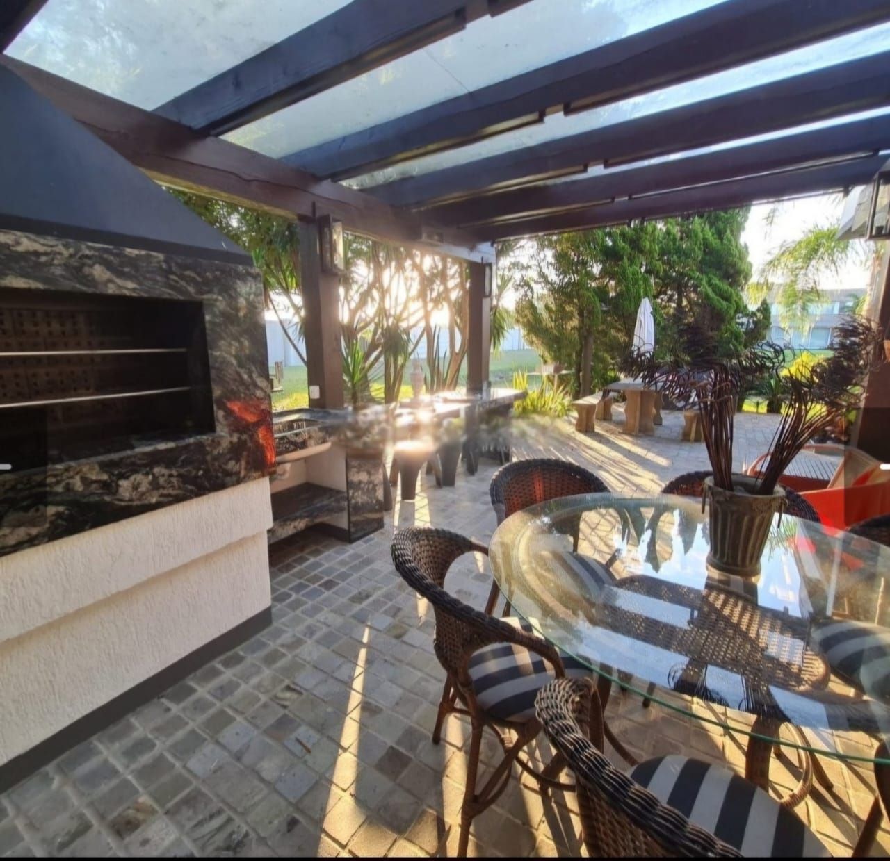 Casa no tradicional Condomínio Bosques de Atlântida a venda ou locação por temporada (R$4.000,00 ao dia), sobrado com projeto neo moderno, totalmente mobiliada, lindo jardim, 04 suítes amplas, living 03 ambientes com lareira, pé direito duplo, estar íntimo, sacada de frente, 02 espaços gourmet com churrasqueira, lavabo, dependência de empregada, pátio a beira lago, abrigo para dois carros. Condomínio com toda infra estrutura, piscinas, piscina coberta aquecida, cancha de tennis de saibro, cancha de beach tennis, campo de futebol gramado, sala de jogos, salão gourmet e salão de festas, academia, portaria 24 horas, na Avenida Central de Atlântida.