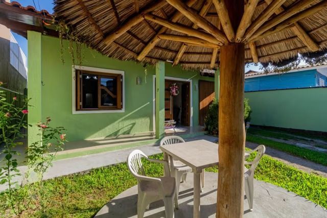 Casa com excelente padrão construtivo, com 101 m² de área. Dispõe de ampla sala de estar e jantar, com acabamento em drywall, luminárias, lareira e aberturas amplas que garantem ótima ventilação.