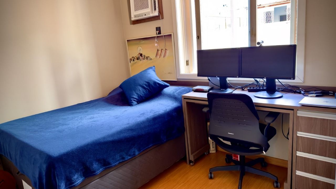 Andar superior - Dois quartos bem iluminados, sendo um deles com suíte americana, garantindo conforto e privacidade.