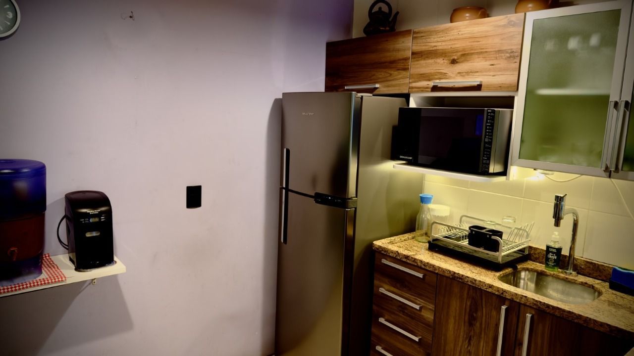 Diferenciais - Área de serviço, água quente, pátio privativo. A decoração interna é um grande destaque, proporcionando um ambiente extremamente aconchegante e acolhedor. Os espaços foram planejados para oferecer funcionalidade e conforto, incluindo 3 aparelhos de ar-condicionado, ventiladores de teto, lavadora de roupas, mesa de vidro e cadeiras de madeira maciça.
