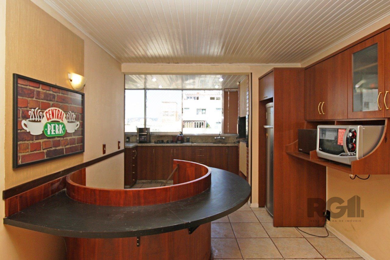 Primeiro piso - hall de entrada, lavabo, living com janelão e em porcelanato, 2 dormitórios, banheiro social. Parte superior - Amplo estar com cozinha semi-mobiliada, bar em um estar amplo com churrasqueira e terraço, à venda na Rua Sofia Veloso próximo à República no bairro Cidade Baixa. Rua silenciosa, andar alto com vista permanente. Garagem escriturada com controle remoto. Aceita FGTS, Financiamento bancário e estuda-se VEÍCULO de menor valor.