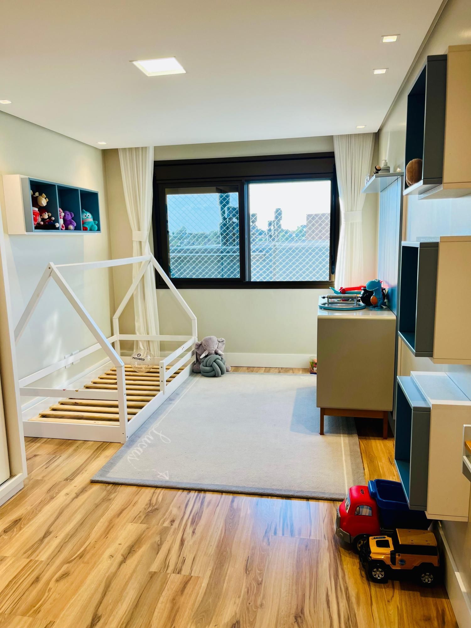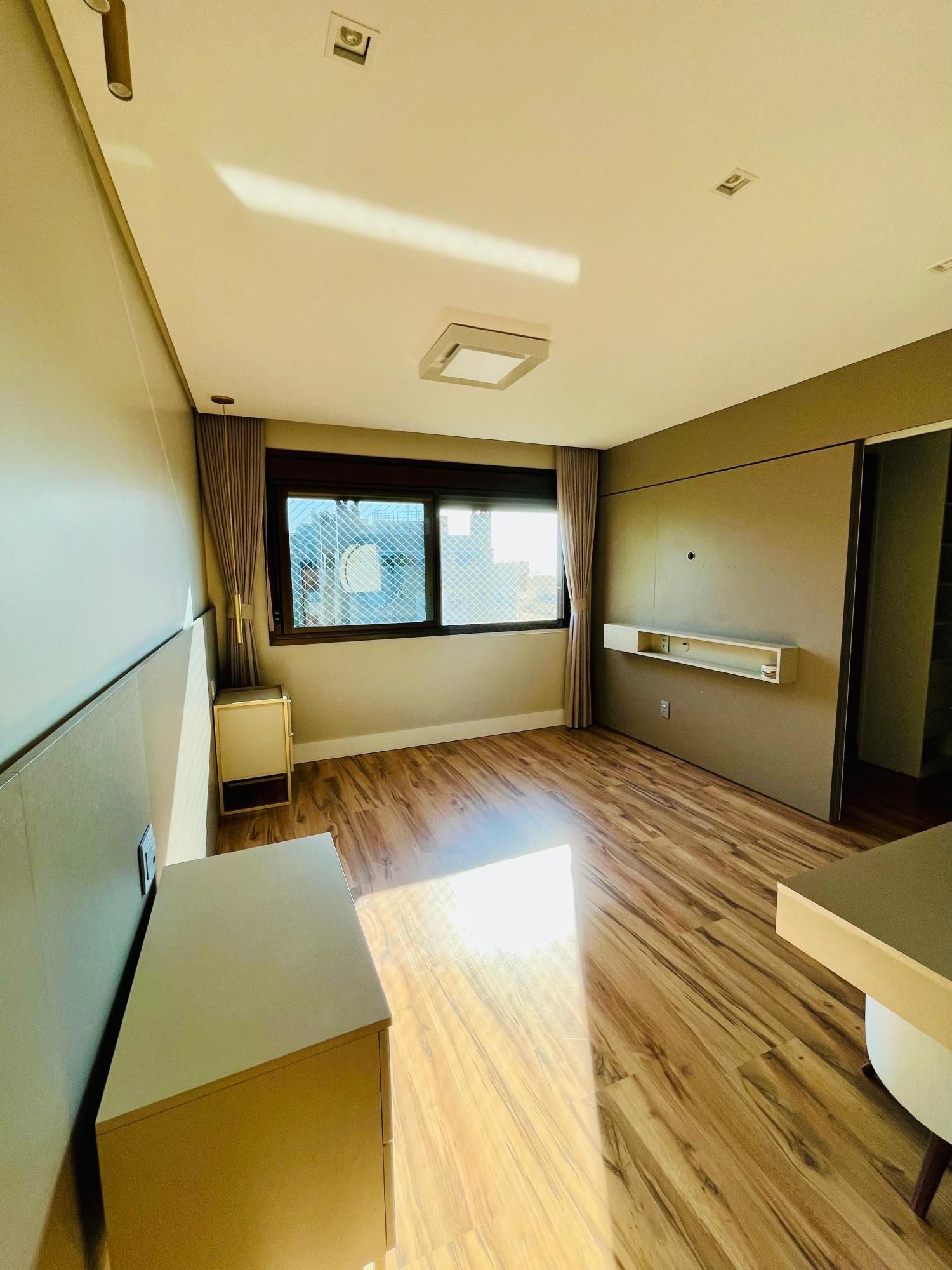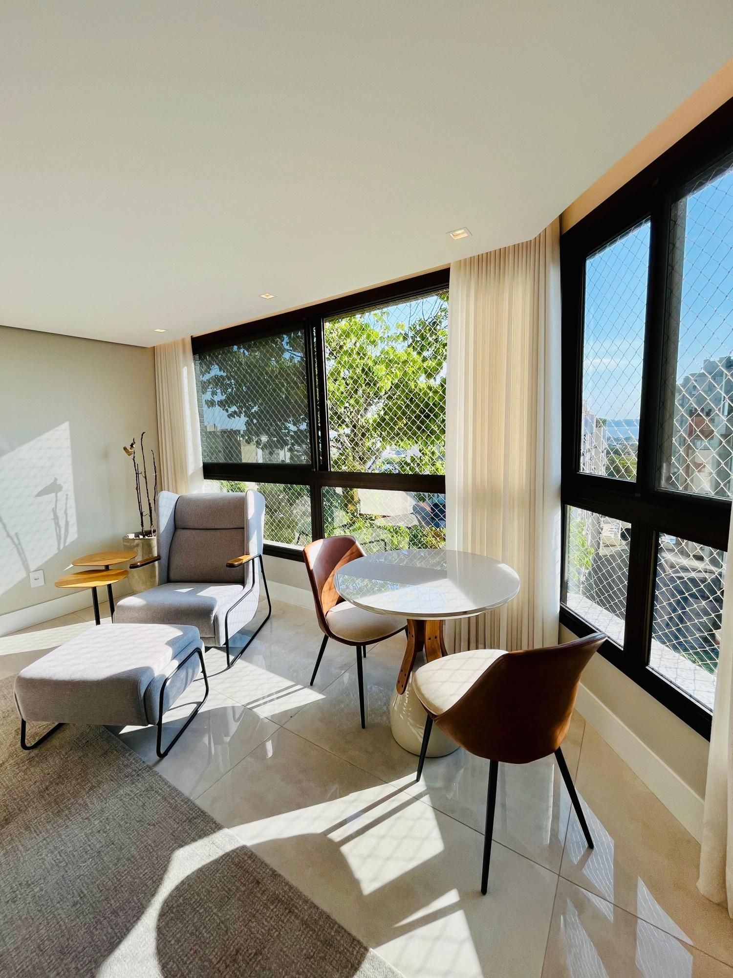 O imóvel conta com três dormitórios, sendo uma suíte, e uma planta muito bem distribuída. O living é espaçoso, com ambientes de estar e jantar integrados, proporcionando um espaço perfeito para receber amigos e familiares. O apartamento possui projeto de interiores assinado por arquiteta, com móveis planejados sob medida que valorizam cada ambiente e oferecem funcionalidade no dia a dia.