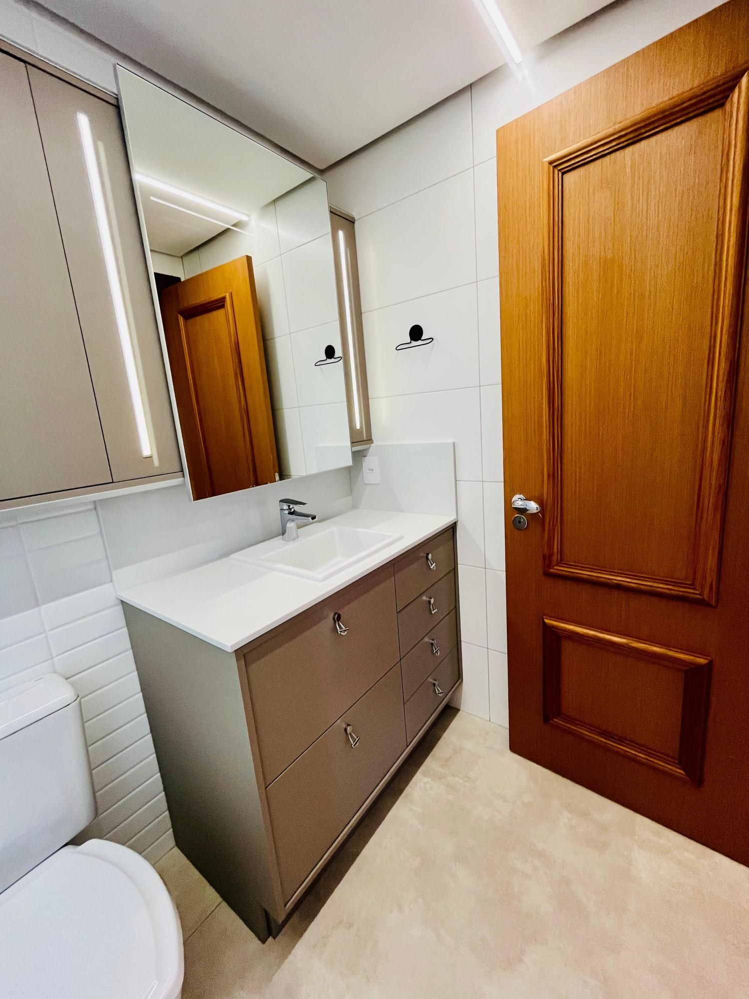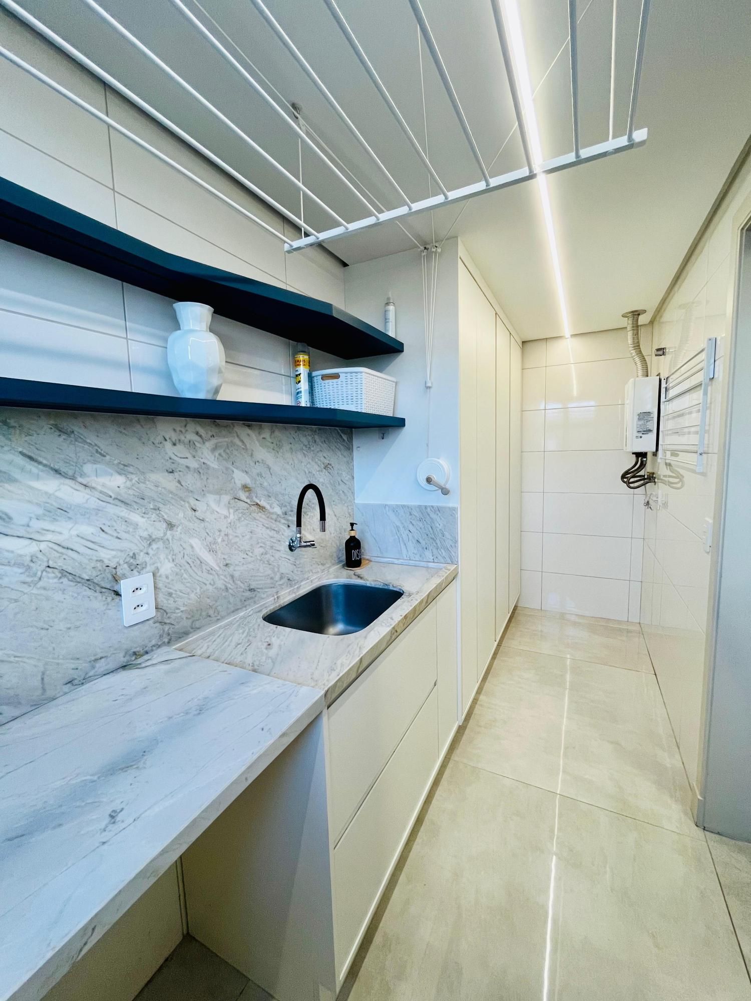 A cozinha apresenta ótimo aproveitamento de espaço, com layout prático e elegante, além de área de serviço separada. Os ambientes contam com excelente iluminação natural e ventilação, tornando o apartamento ainda mais agradável.