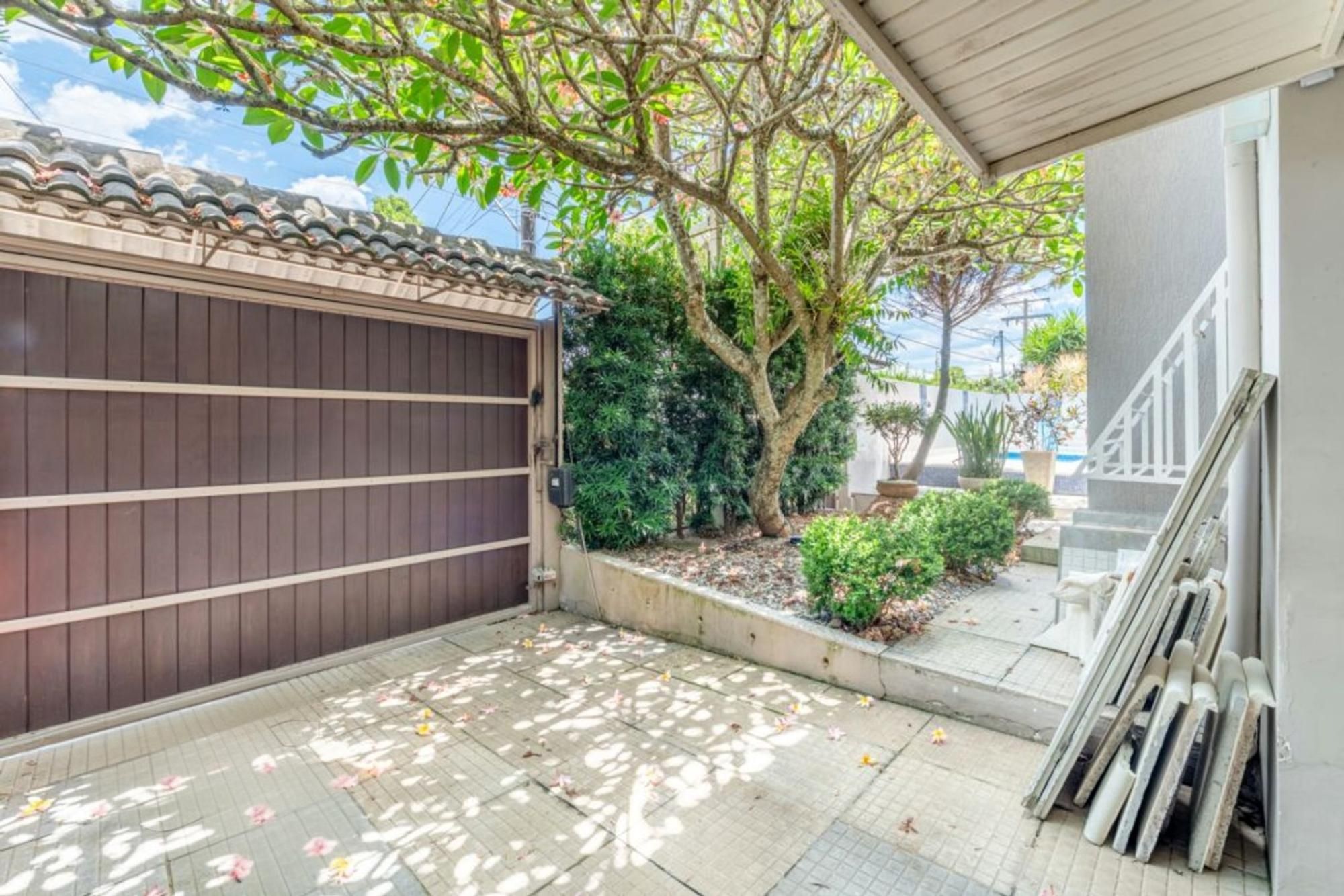 Residência com muro perimetral coberto por cerca verde, proporcionando privacidade. Entrada arborizada, quintal com áreas de sombra e paisagismo consolidado. Imóvel fechado e bem protegido.