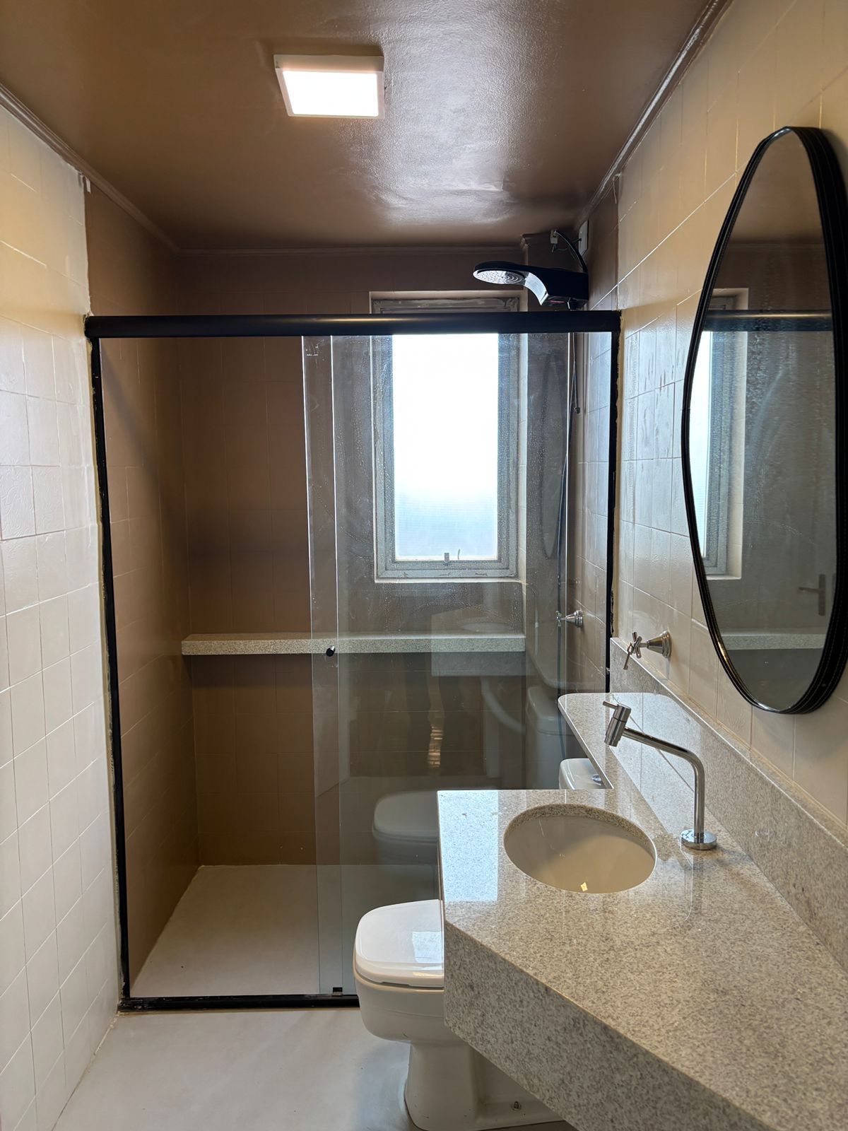 Acabamentos em mármore, box e chuveiros instalados, luminárias em todos os ambientes, pia e fogão na cozinha.