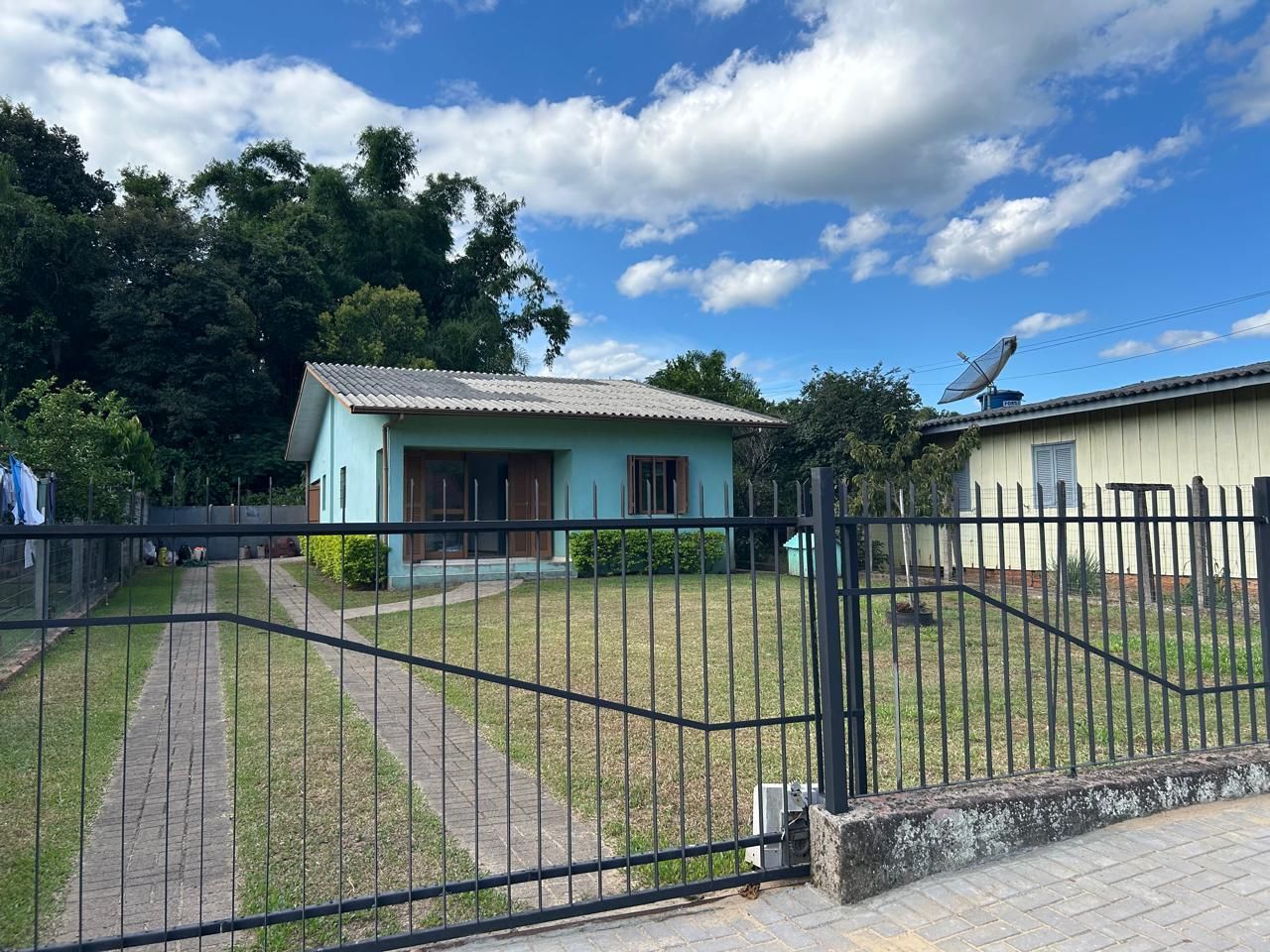 Casa com 99,55mq, sala, cozinha americana, dois dormitórios, banheiro social, garagem fechada para dois carros, pátio e jardim, terreno amplo, próximo a Br 116, e Café Colonial Encosta da Serra., Centro de Picada Café, na Rota Romântica.
