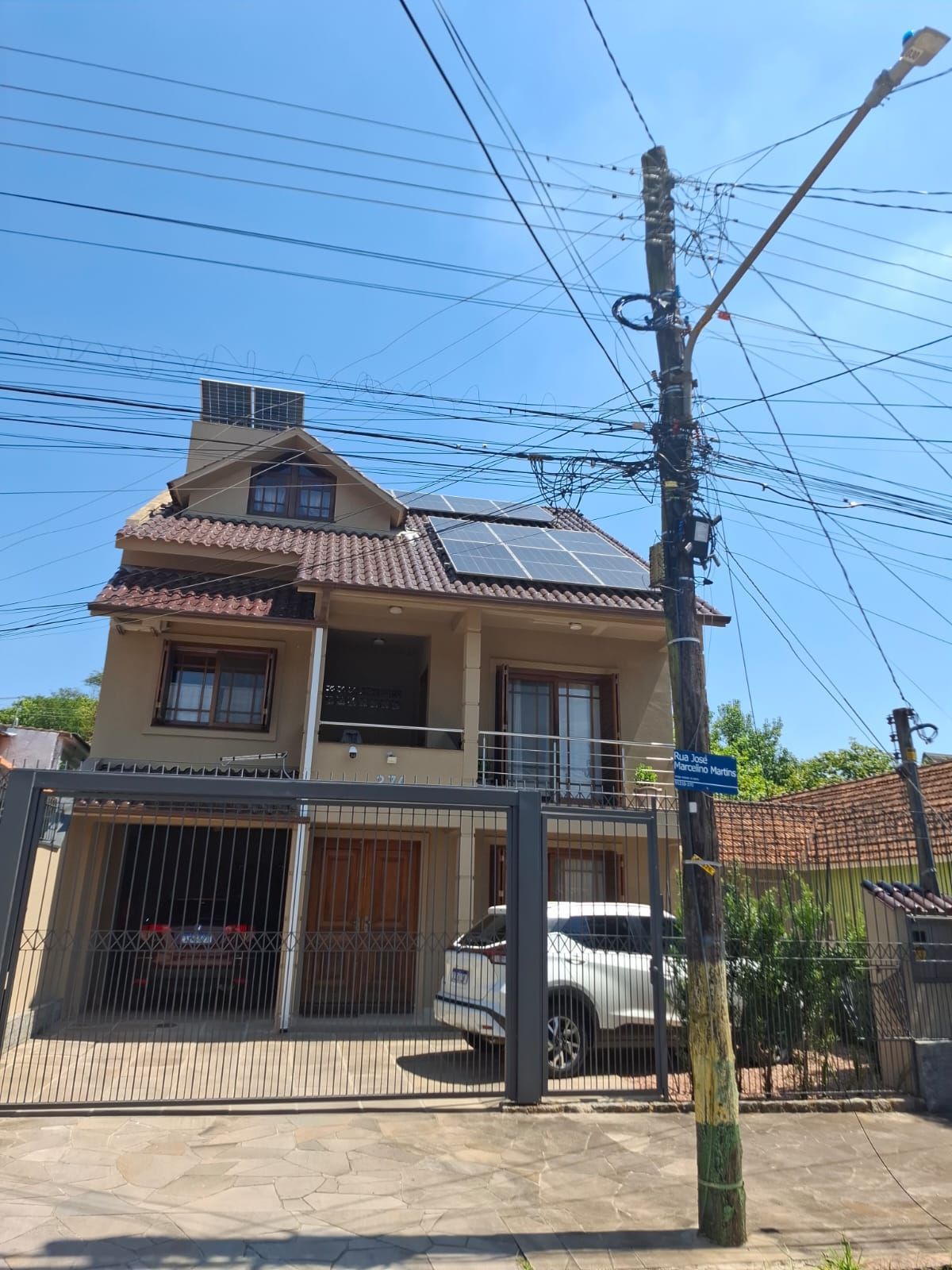 Sobrado no Bairro Jardim Itú Sabará com Área Total de 450m2, Área Construída de 336,17m2, placas solares com sobra de energia, água quente/aquecedor de passagem, piscina com aquecimento solar, quiosque com churrasqueira, casa com aberturas em louro freijó, 3 suítes , master com closet e 2 sacadas, escritório ou 4* dormitório, sala estar com lareira/ jantar e cozinha integrados, lavabo, 2 banheiros sociais, área de serviço/ lavanderia/ rouparia, 3 depósitos, Garagem + 3 vagas, sala jogos com lareira e mesa Sinuca, área Gourmet com fogão à lenha campeiro e churrasqueira. O imóvel fica nas proximidades da Avenida Nilo Peçanha, Shopping Iguatemi e Cestto da Protásio Alves.