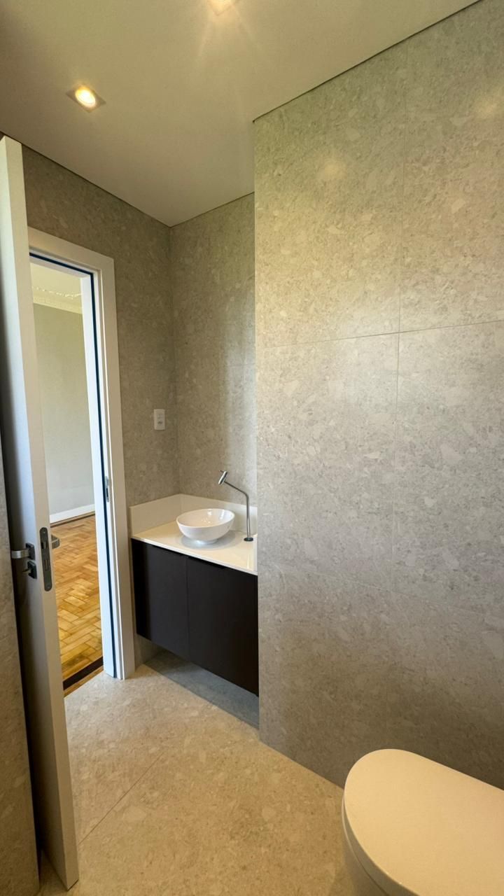 O banheiro possui porcelanato de alta qualidade e vaso sanitário moderno. O apartamento está com piso parquet restaurado com sinteco, pronto para morar.