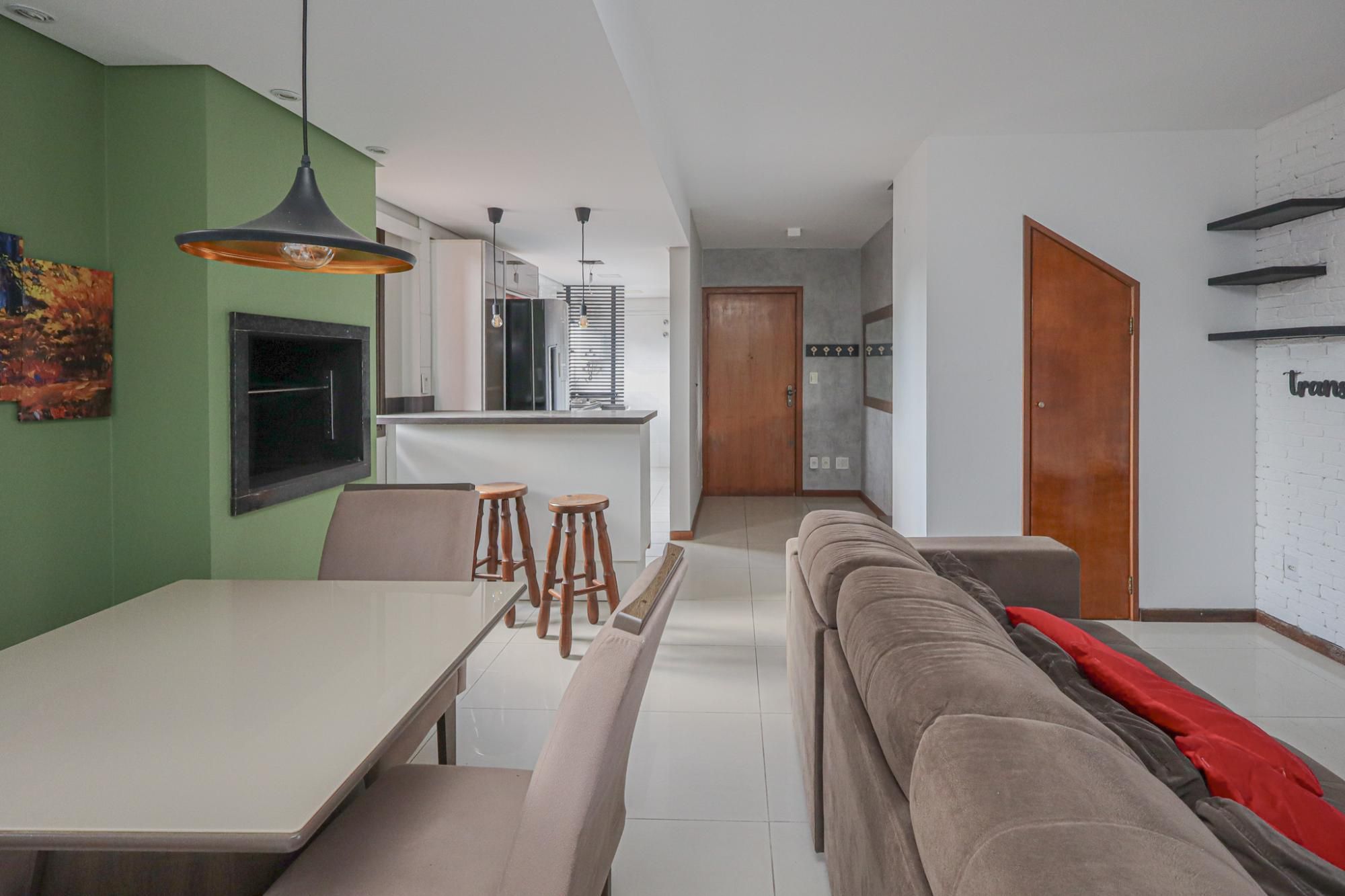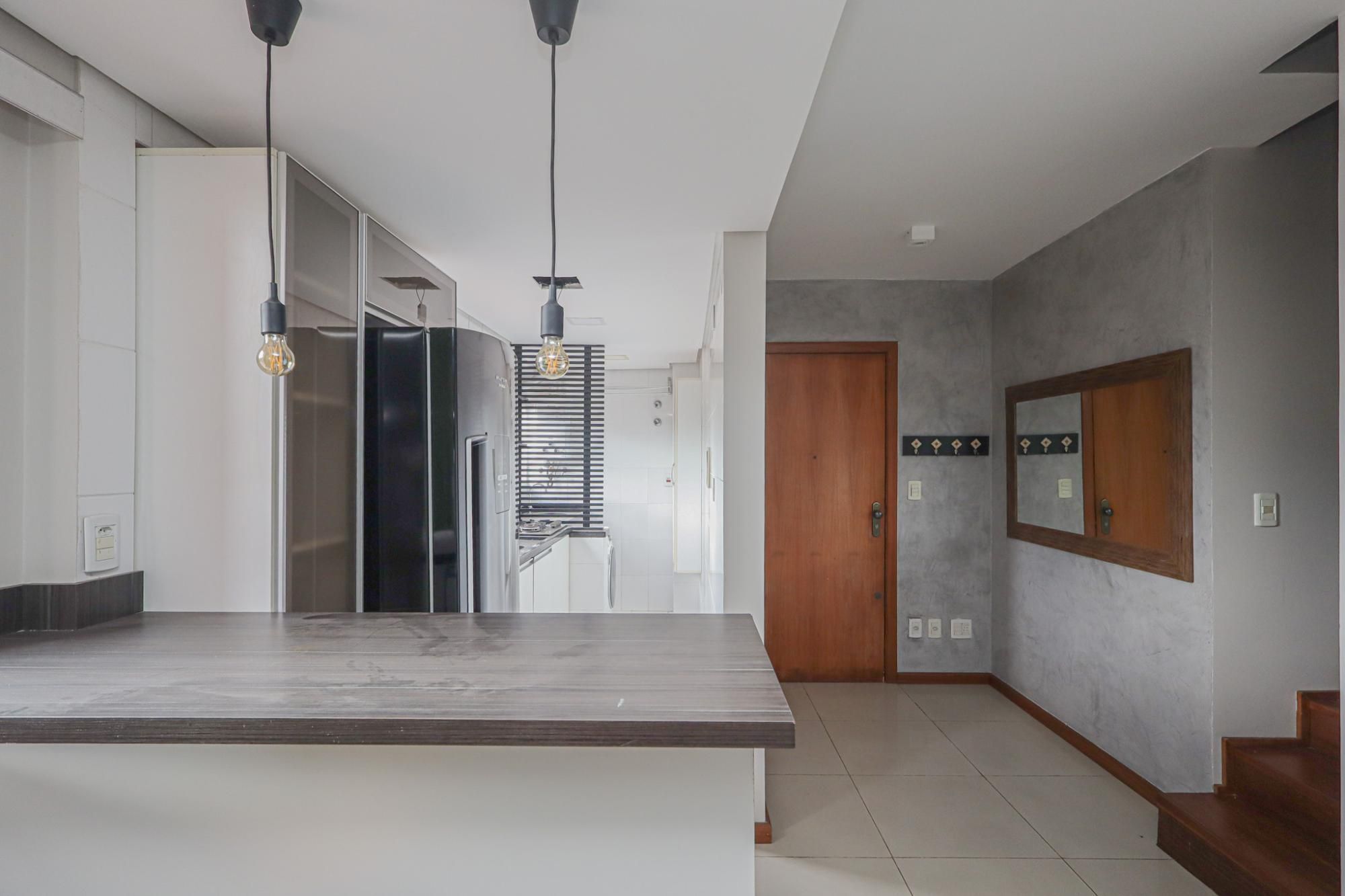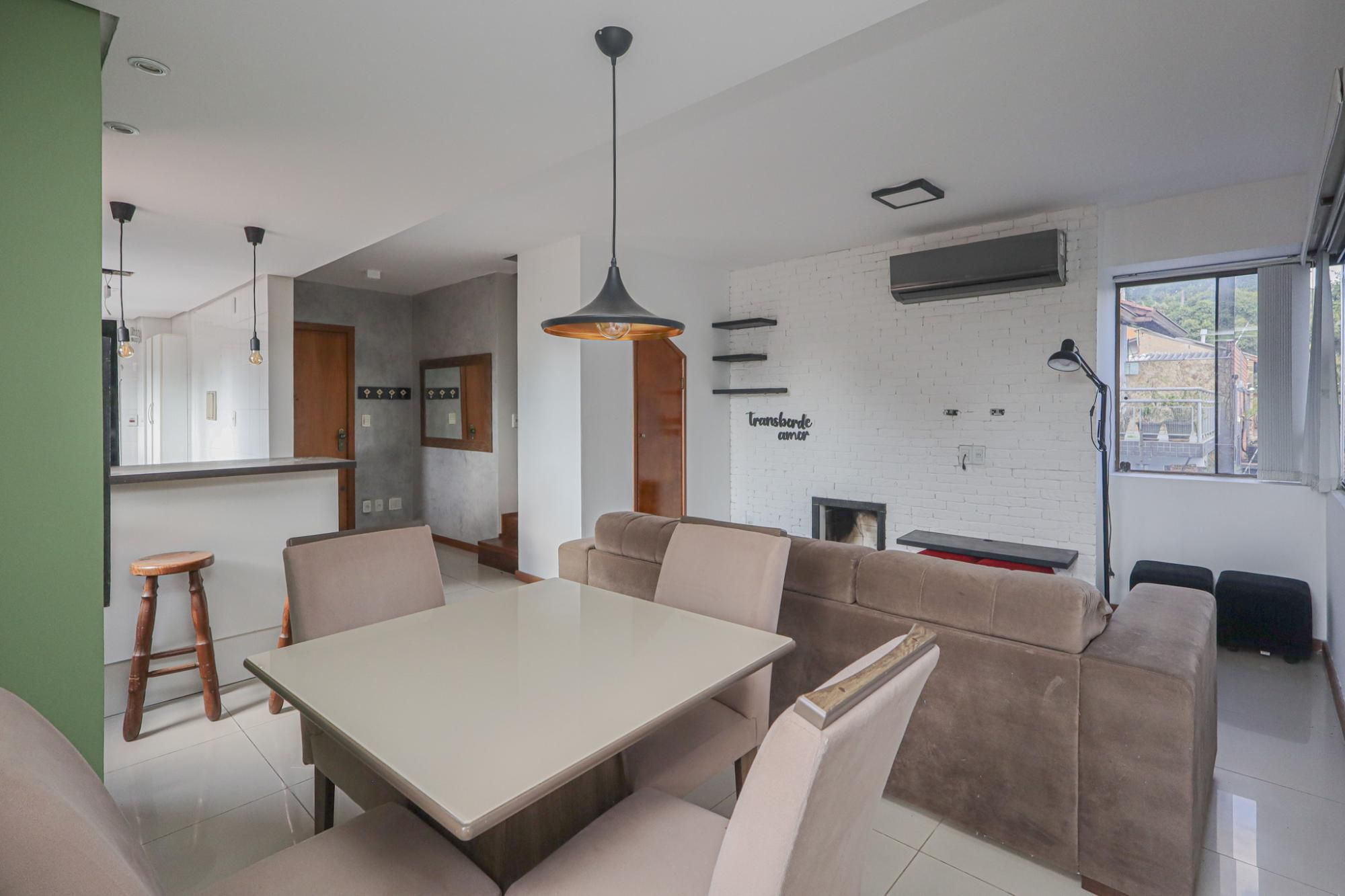 Apartamento duplex mobiliado com 82 m² de área privativa com 2 dormitórios sendo 2 suítes, living amplo para 2 ambientes com lareira e churrasqueira, lavabo, cozinha americana montada com área de serviço. Possui 1 vaga de garagem coberta e escriturada.