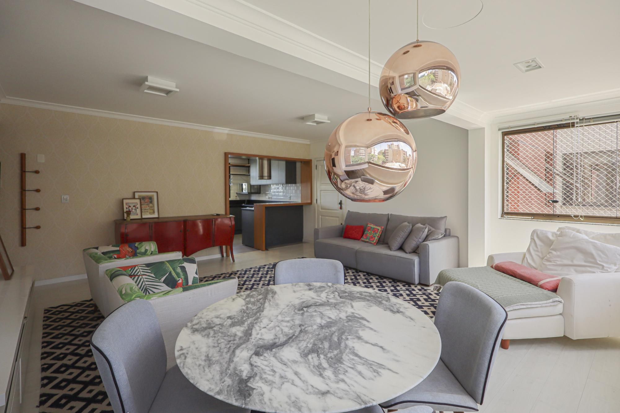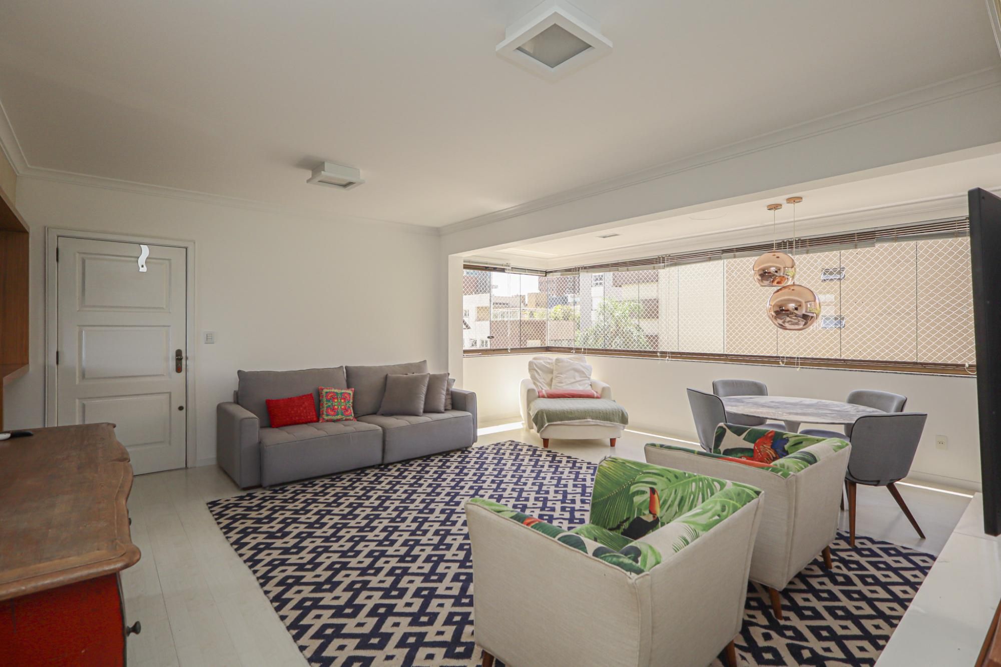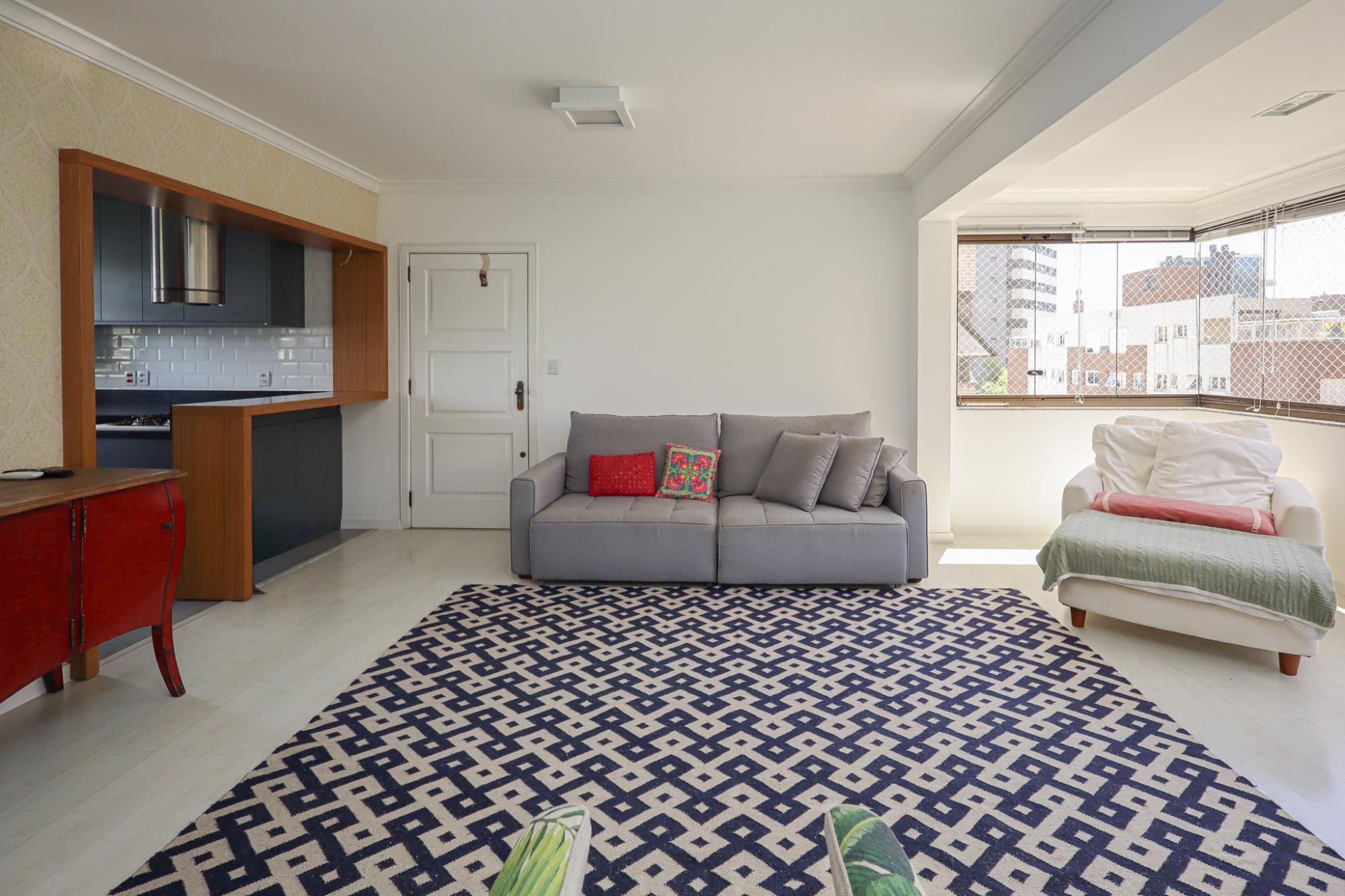 Apartamento em andar alto semimobiliado com 105 m² de área privativa com 2 dormitórios sendo 1 suíte, banheiro social com banheira de hidromassagem e ventilação natural, living amplo para 3 ambientes com janelões proporcionando ótima ventilação e iluminação, cozinha gourmet planejada com churrasqueira e área de serviço.