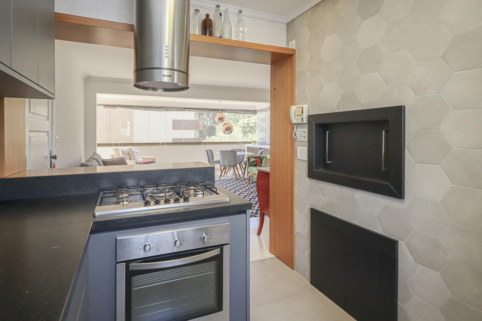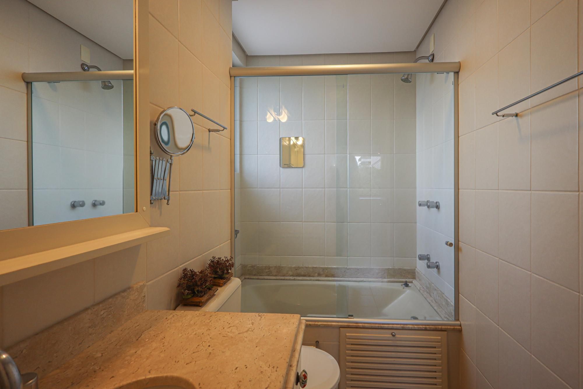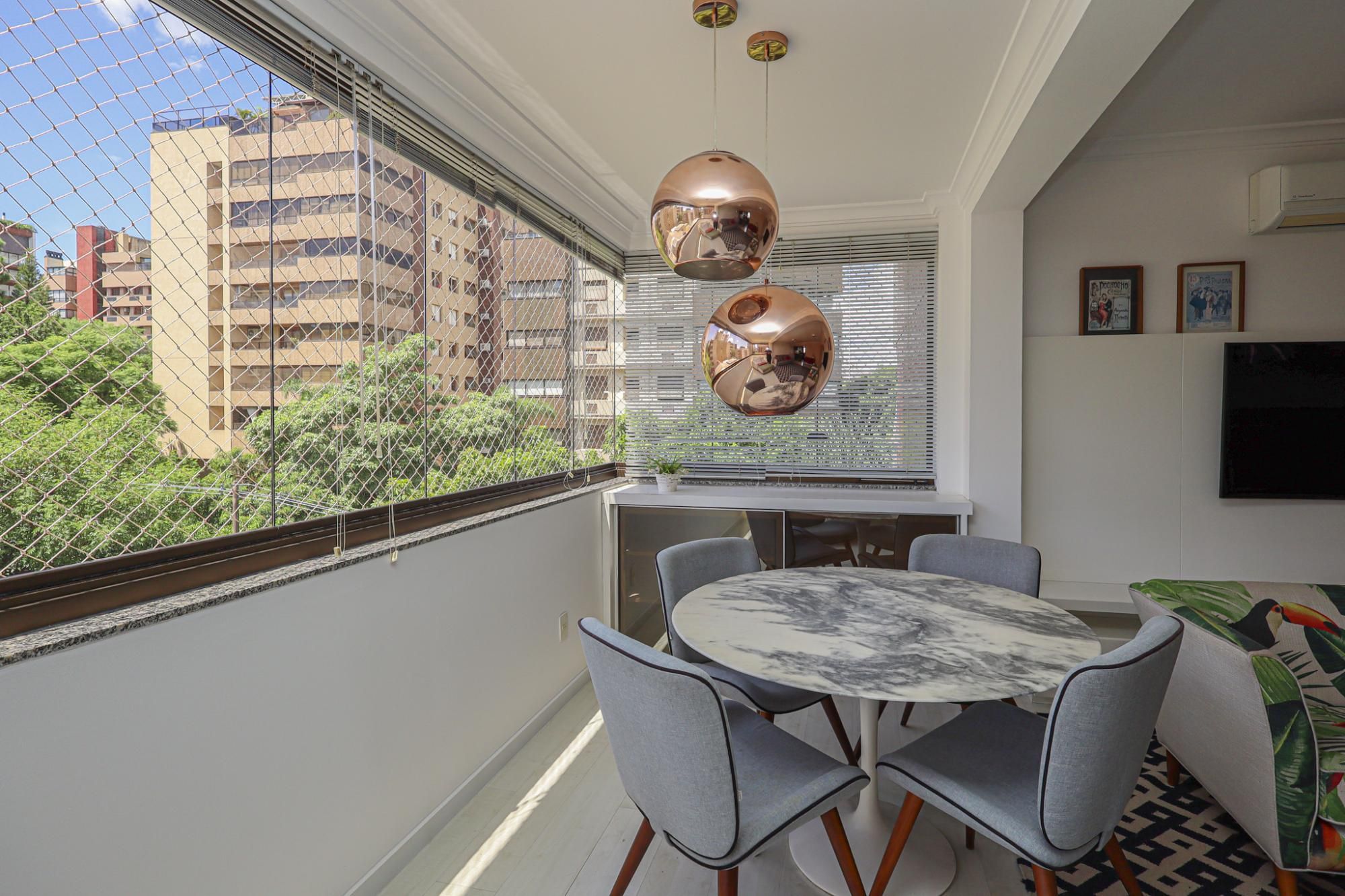 Apartamento em andar alto semimobiliado com 105 m² de área privativa com 2 dormitórios sendo 1 suíte, banheiro social com banheira de hidromassagem e ventilação natural, living amplo para 3 ambientes com janelões proporcionando ótima ventilação e iluminação, cozinha gourmet planejada com churrasqueira e área de serviço.