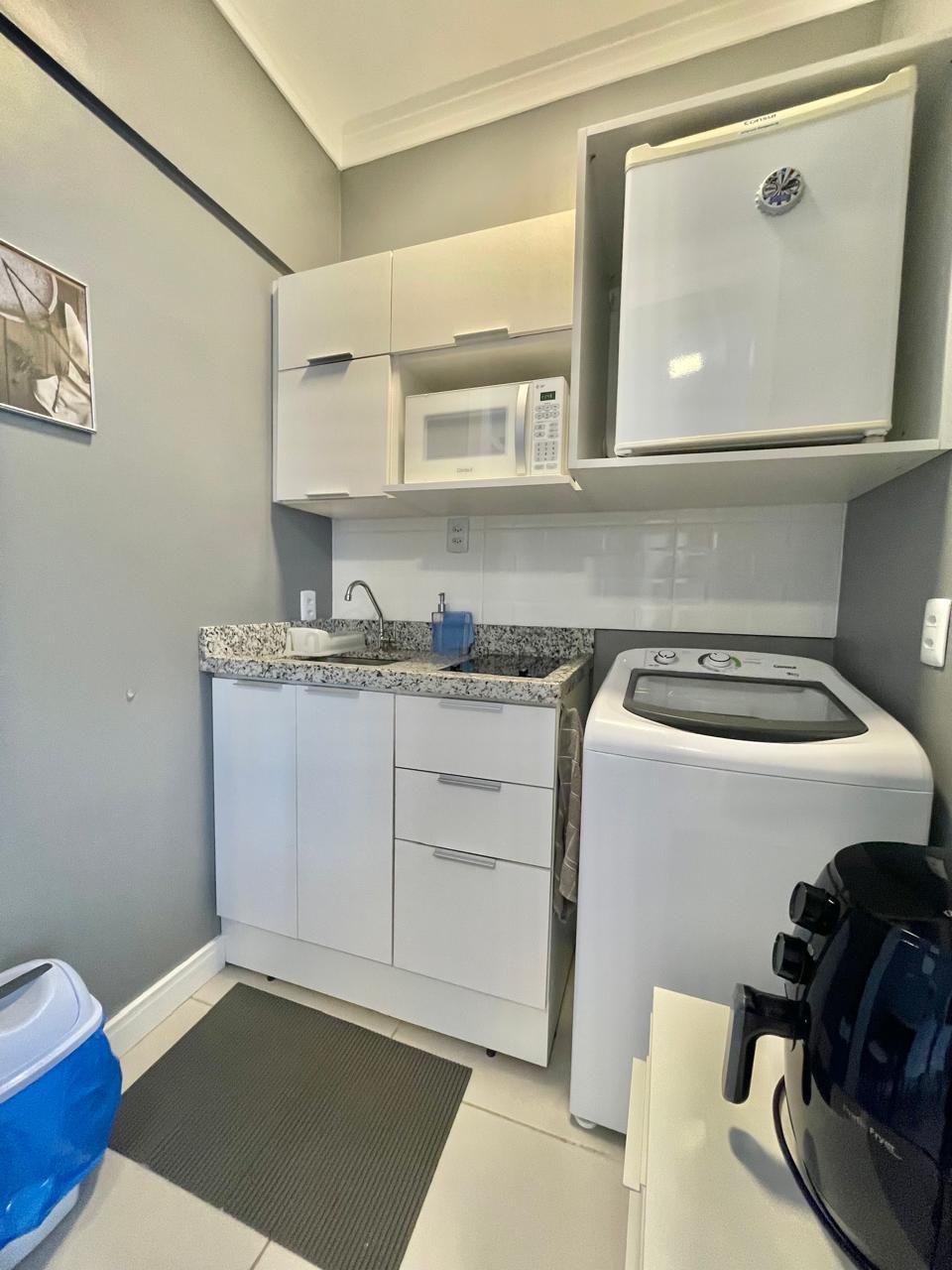A cozinha é moderna e funcional, equipada com fogão por indução, frigobar, eletrodomésticos e máquina de lavar, ideal para quem busca praticidade, tecnologia e eficiência no dia a dia. O layout inteligente e a excelente iluminação natural proporcionam uma experiência de “entrar e morar” com estilo.