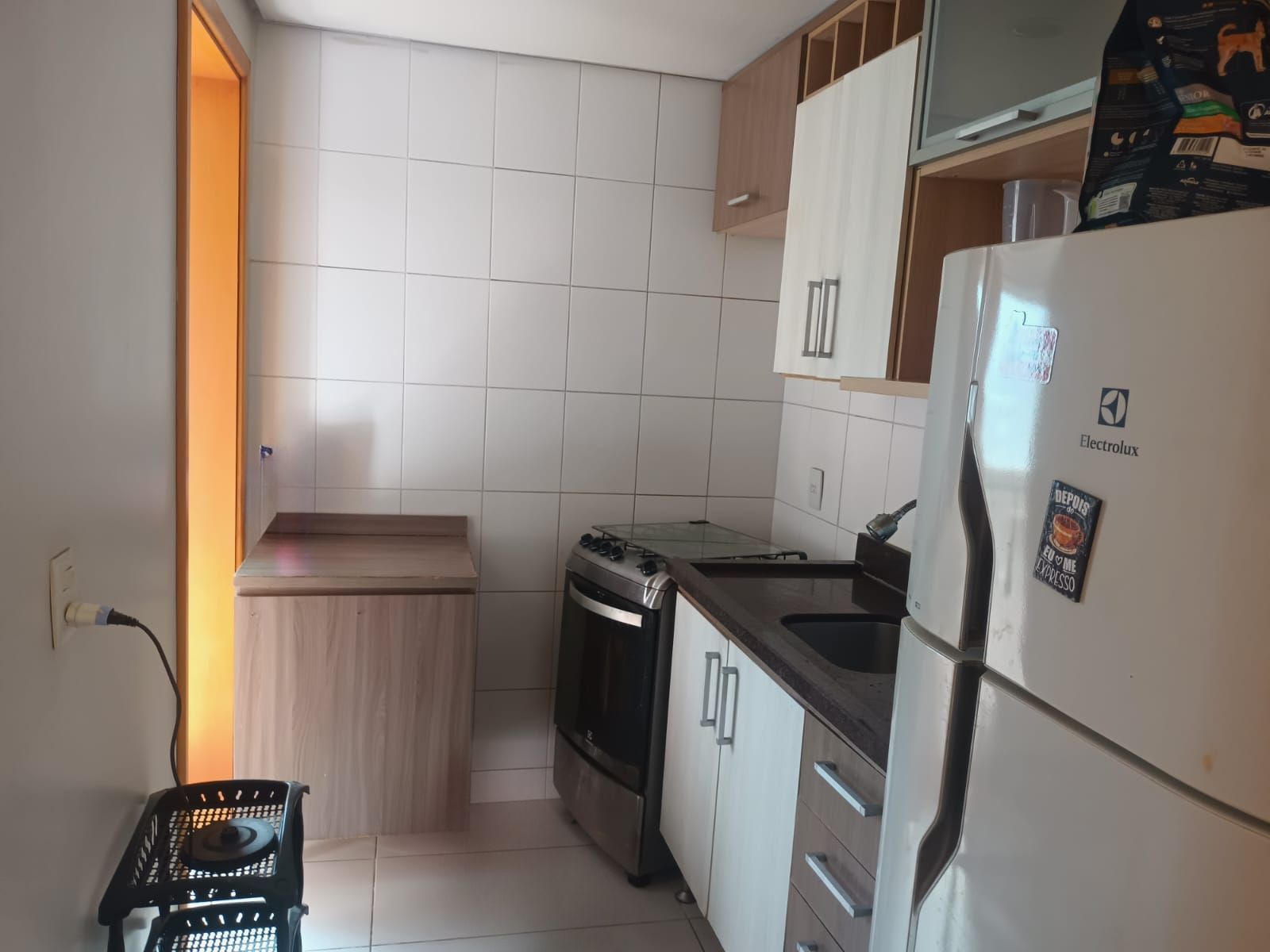 Imóvel com ampla sala de estar e jantar, com janelas grandes, com drywall e espera para splite. Cozinha funcional com móveis e área de serviço. 2 quartos privativos com janelas grandes. 1 banheiro social, com box vidro e ventilação natural.