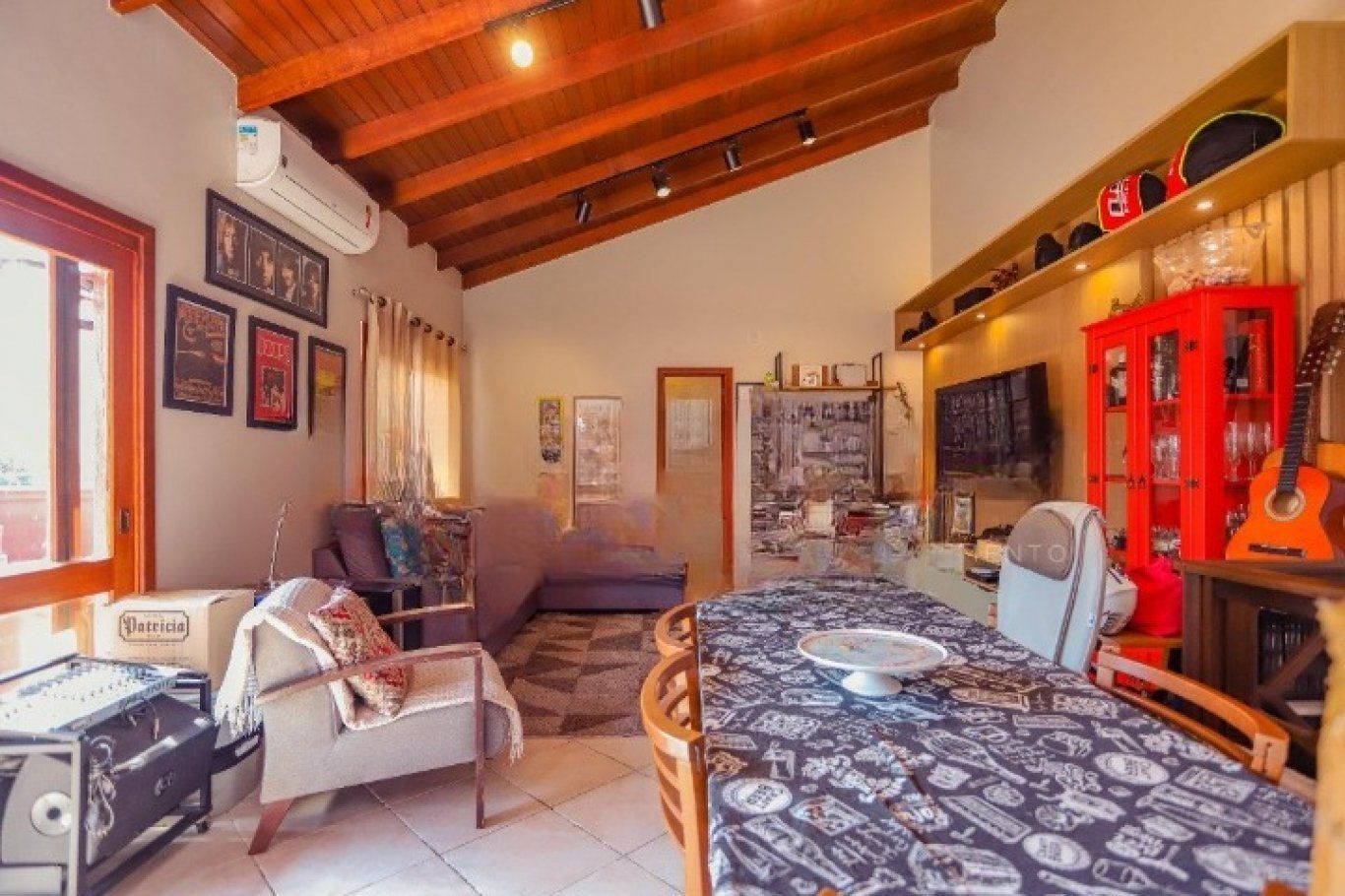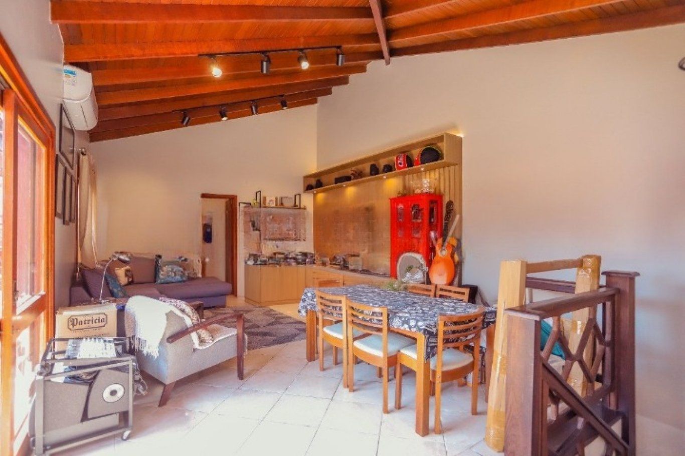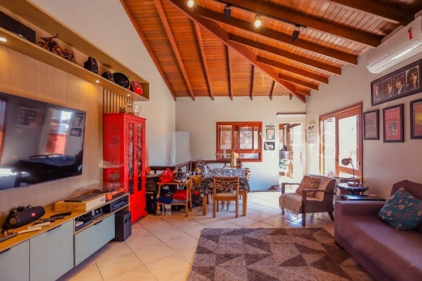 A sala possui dois ambientes, lareira, pequena mesa para refeições e portas que se abrem para a área externa, deixando o espaço muito iluminado e ventilado. Há também um ambiente extra que pode ser utilizado como biblioteca, cantinho de leitura, estúdio criativo, home office, closet, sala de jogos, mini academia, despensa ou dependência de empregada.
