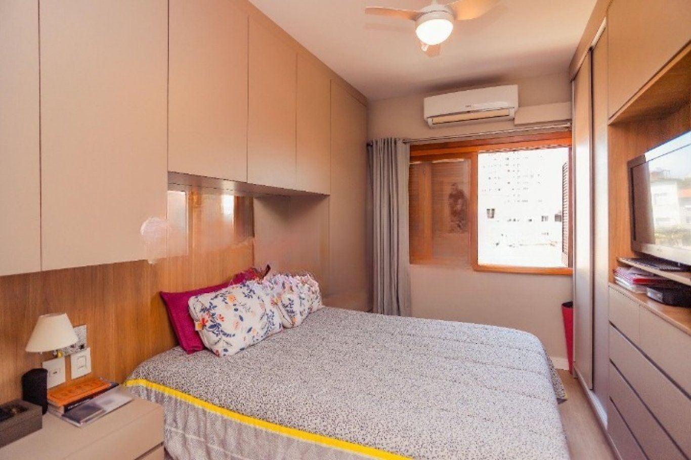 Os dormitórios são confortáveis, bem distribuídos e iluminados, todos com ar-condicionado e piso laminado. A suíte conta com armários planejados, excelente ventilação e banheiro com box de vidro, banheira e janela para o exterior. Os demais quartos são amplos, ventilados e com janelas grandes. O banheiro social possui box de vidro, é todo em cerâmica e conta com janela externa, garantindo ótimo arejamento.