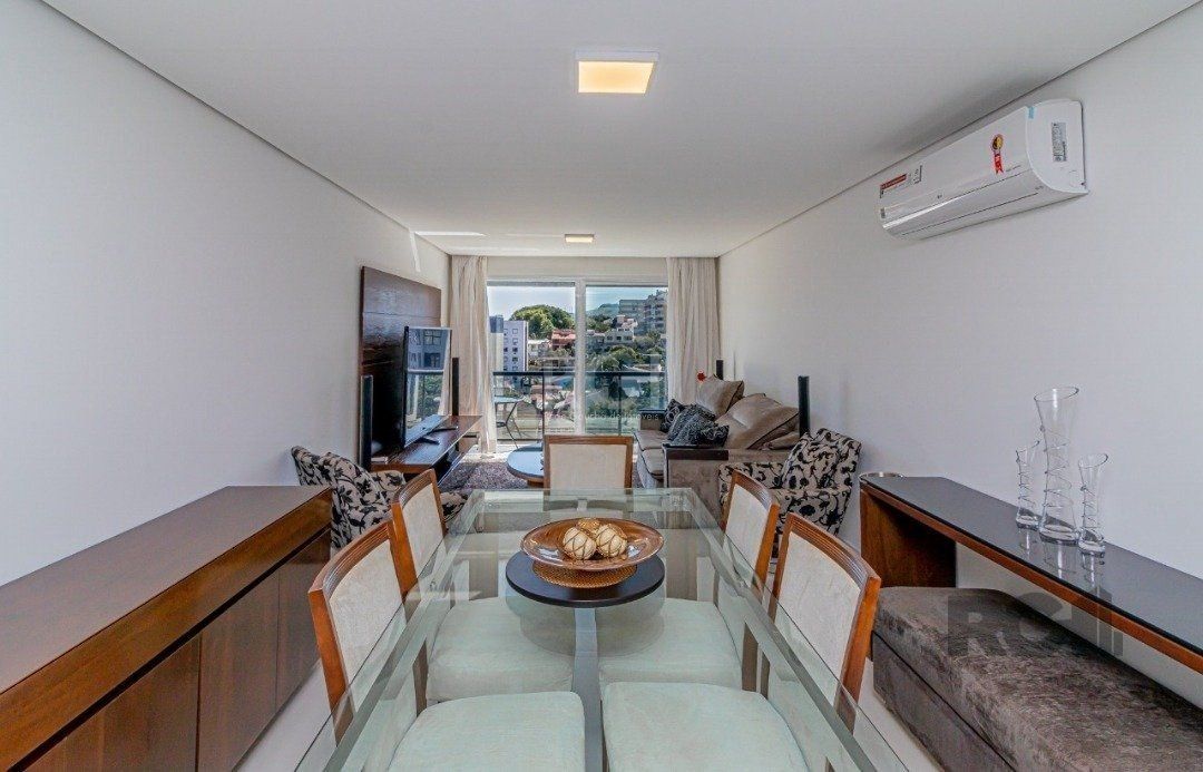 Excelente apartamento de 02 dormitório com possibilidade de transformar o escritório no 03 dormitório com suíte, com aproximadamente 133m² privativos, de fundos, mobiliado , 2 suítes, sendo uma suíte com closet. Você pode contar também com um amplo living com sacada e que integra a sala de estar à sala de jantar, espaço gourmet com churrasqueira, cozinha com armários planejados, área de serviço/lavanderia independente, junker e lavabo, além de duas vagas de estacionamento no subsolo.