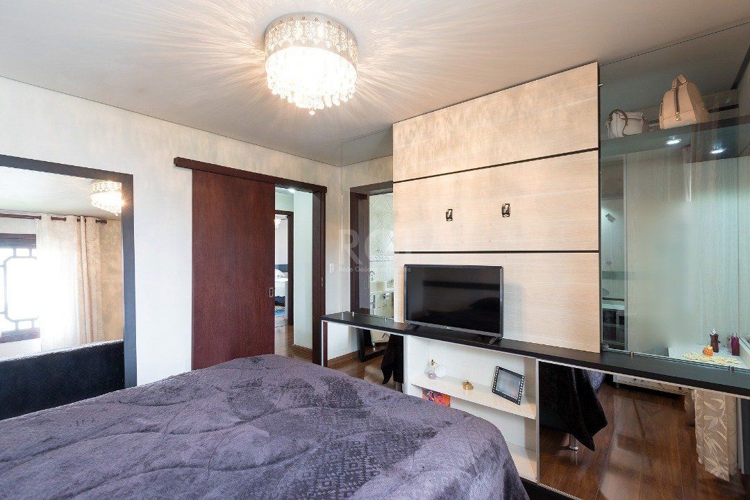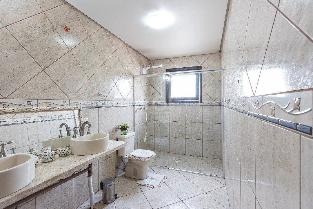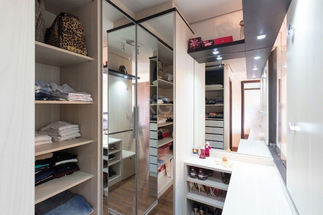 No segundo andar temos três dormitórios, sendo um suíte com closet e banheiro com pia dupla.