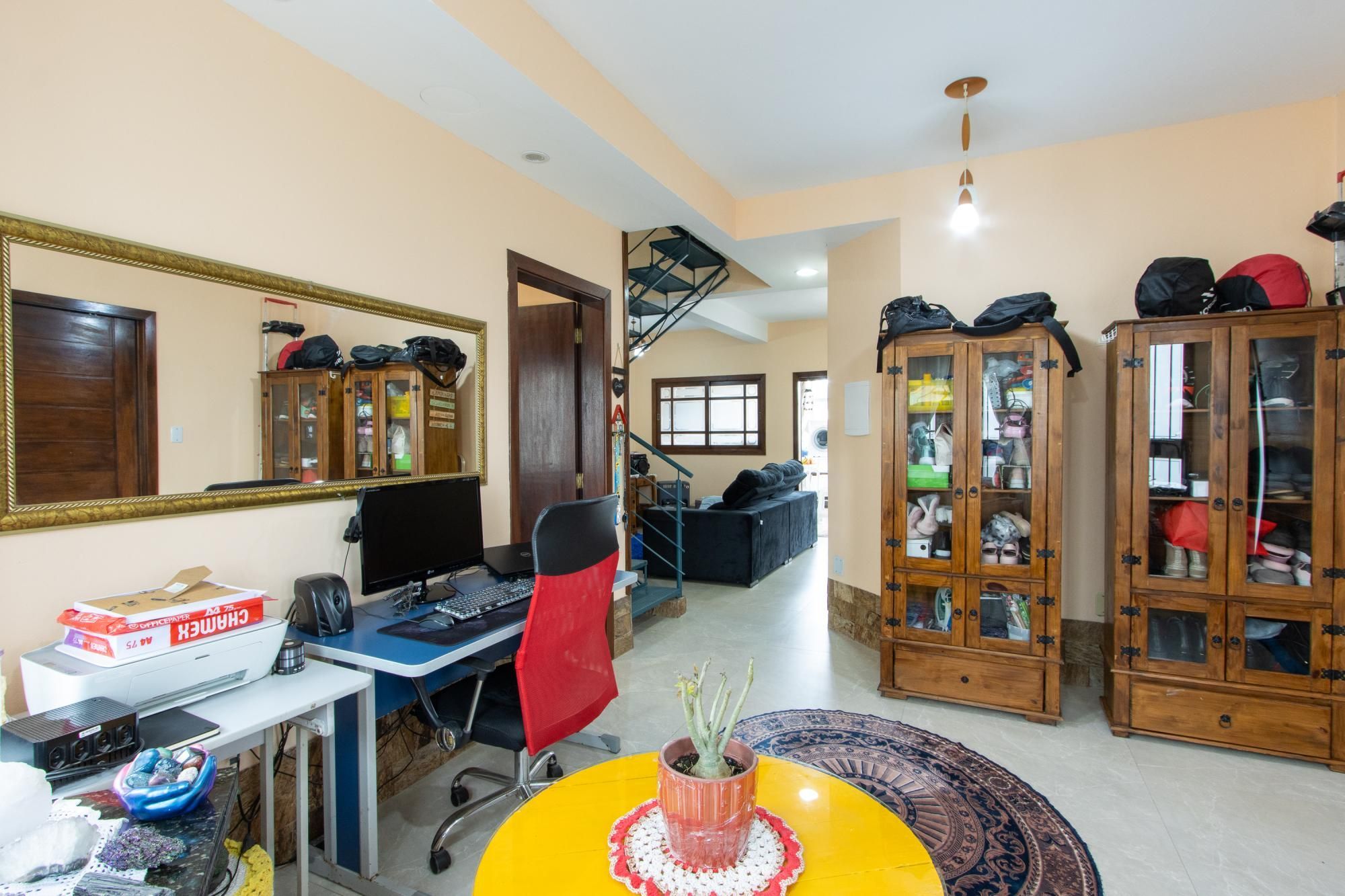 Sobrado de esquina com sala de estar, lavabo, gabinete, sala de jantar cozinha com conceito aberto, espaço gourmet com churrasqueira e lavanderia.