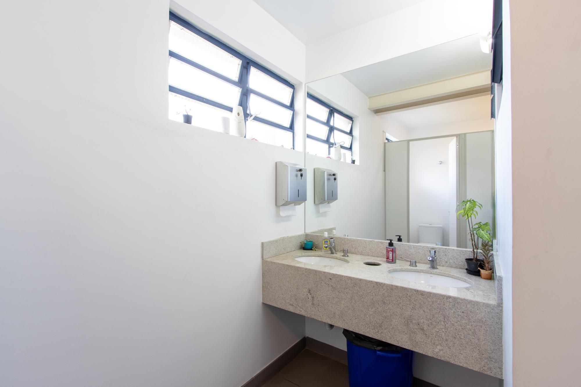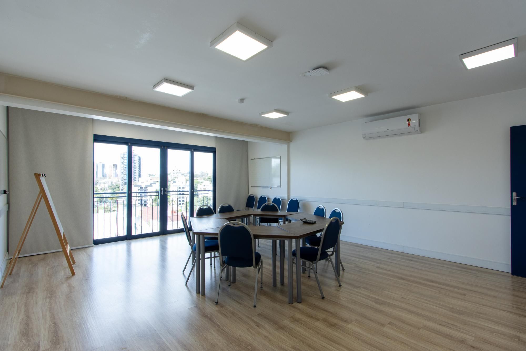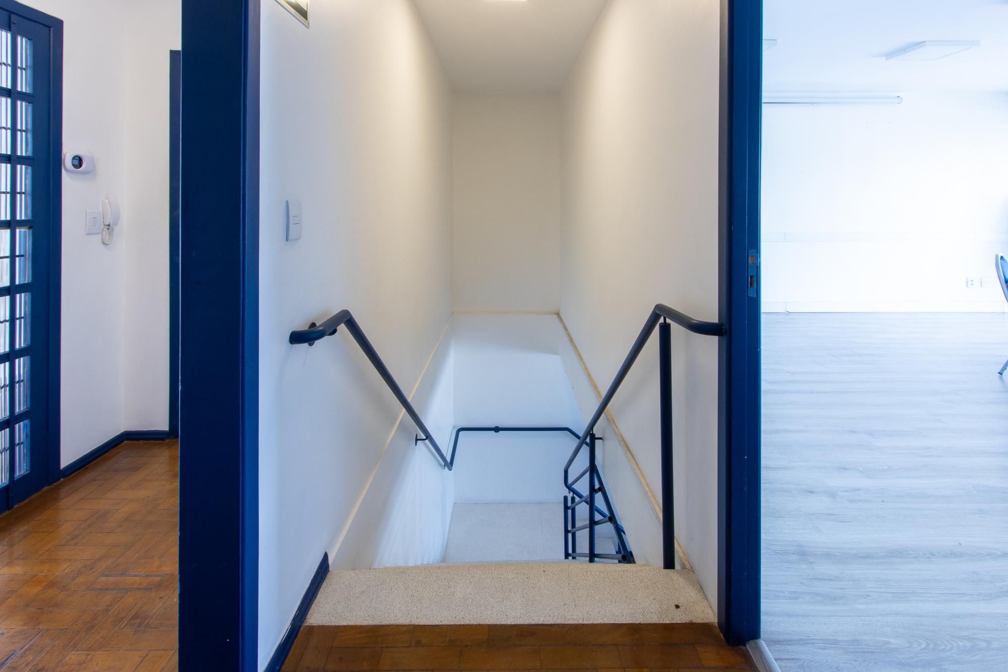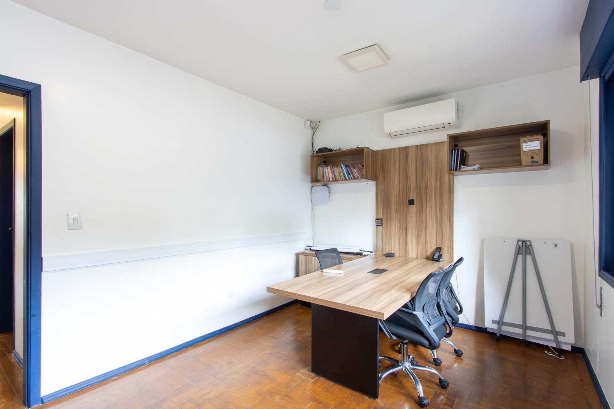O pavimento térreo possui hall, sala de recepção, ampla sala de reuniões com sacada, 2 salas e 2 banheiros, segundo pavimento possui refeitório, 1 sala, acesso à garagem para 2 carros e 2 depósitos e o terceiro pavimento possui ampla 3 salas e acesso ao pátio de fundos.