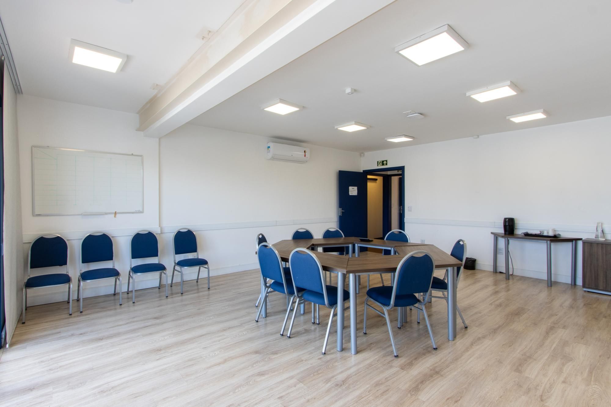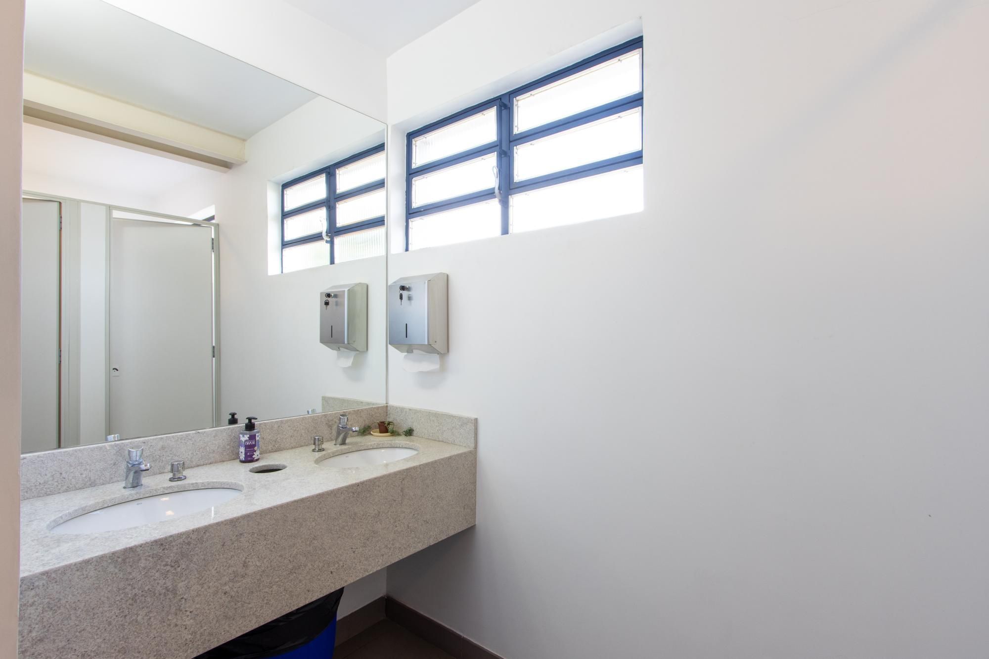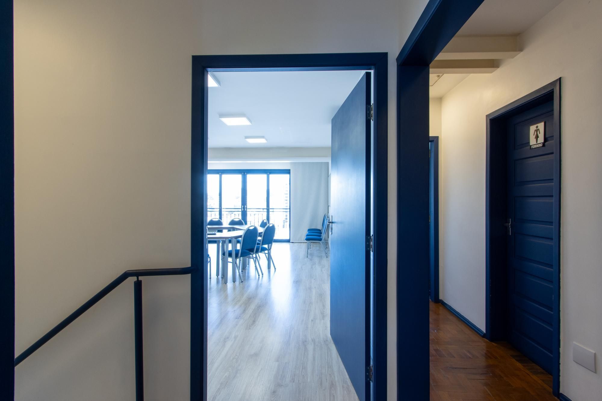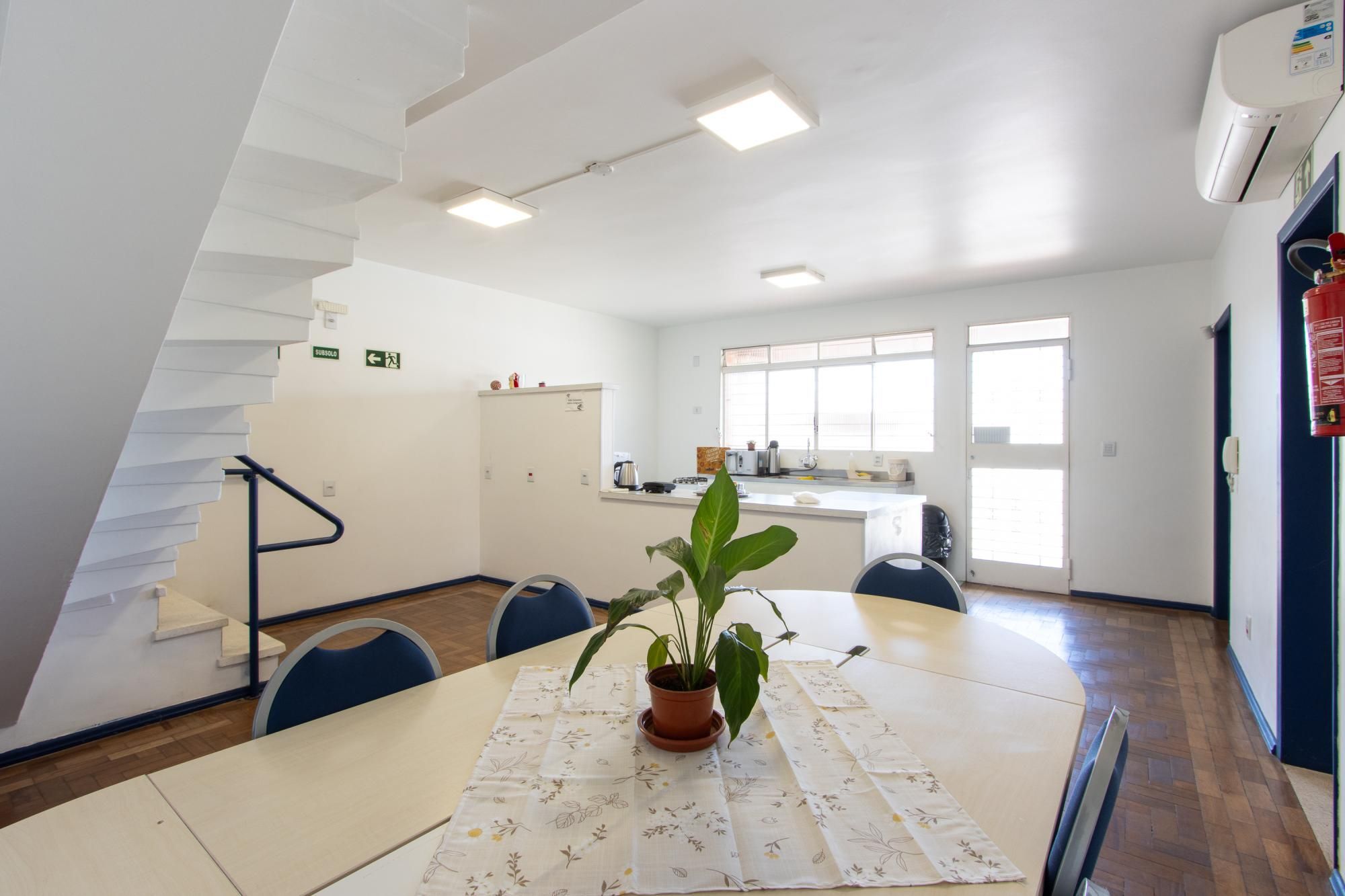 O pavimento térreo possui hall, sala de recepção, ampla sala de reuniões com sacada, 2 salas e 2 banheiros, segundo pavimento possui refeitório, 1 sala, acesso à garagem para 2 carros e 2 depósitos e o terceiro pavimento possui ampla 3 salas e acesso ao pátio de fundos.