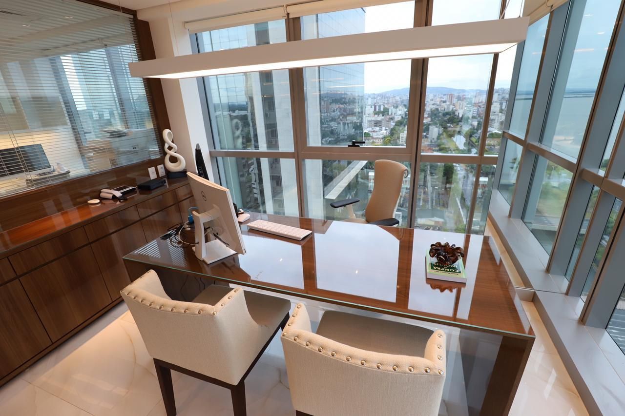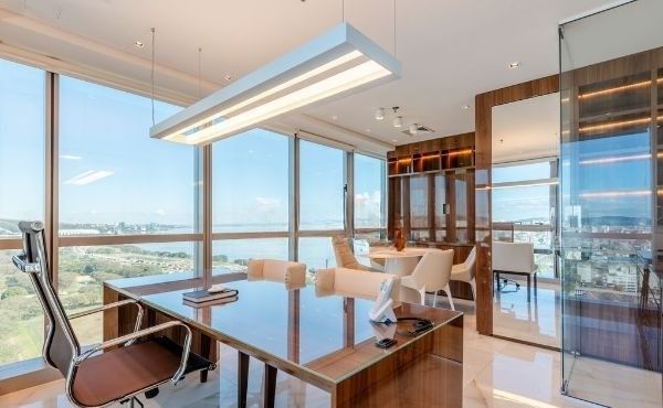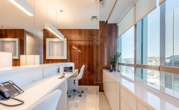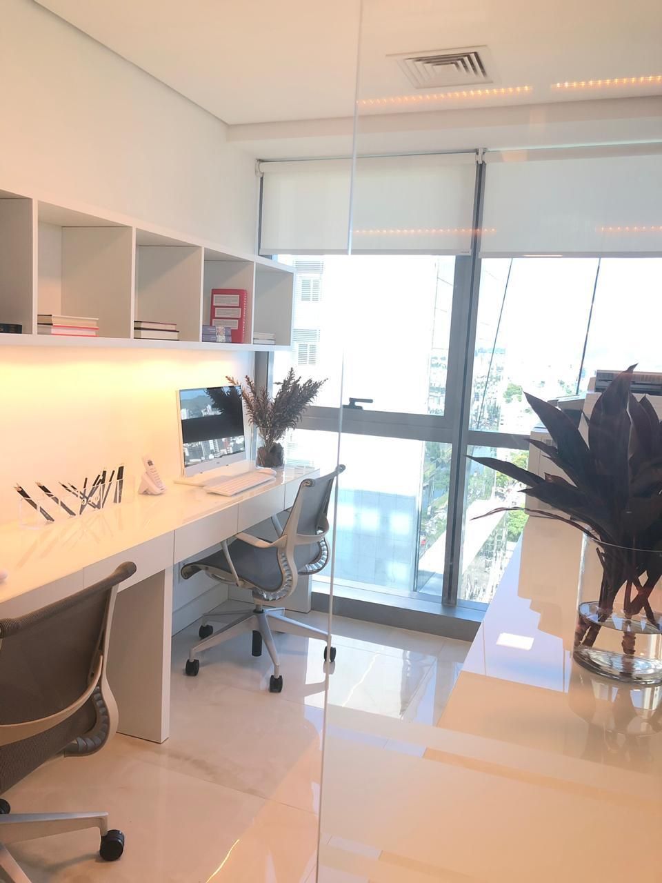 Estilo e requinte em sala comercial no Trend Office com VISTA definida para Orla. A sala decorada por arquiteta, possuí distribuição e aproveitamento do espaço únicos. São 2 salas, a recepção, uma copa e dois banheiros. A mobília é de alta qualidade, assim como os objetos de decoração. Fica semi mobiliada. Possuí ar condicionado central e cortinas motorizadas.