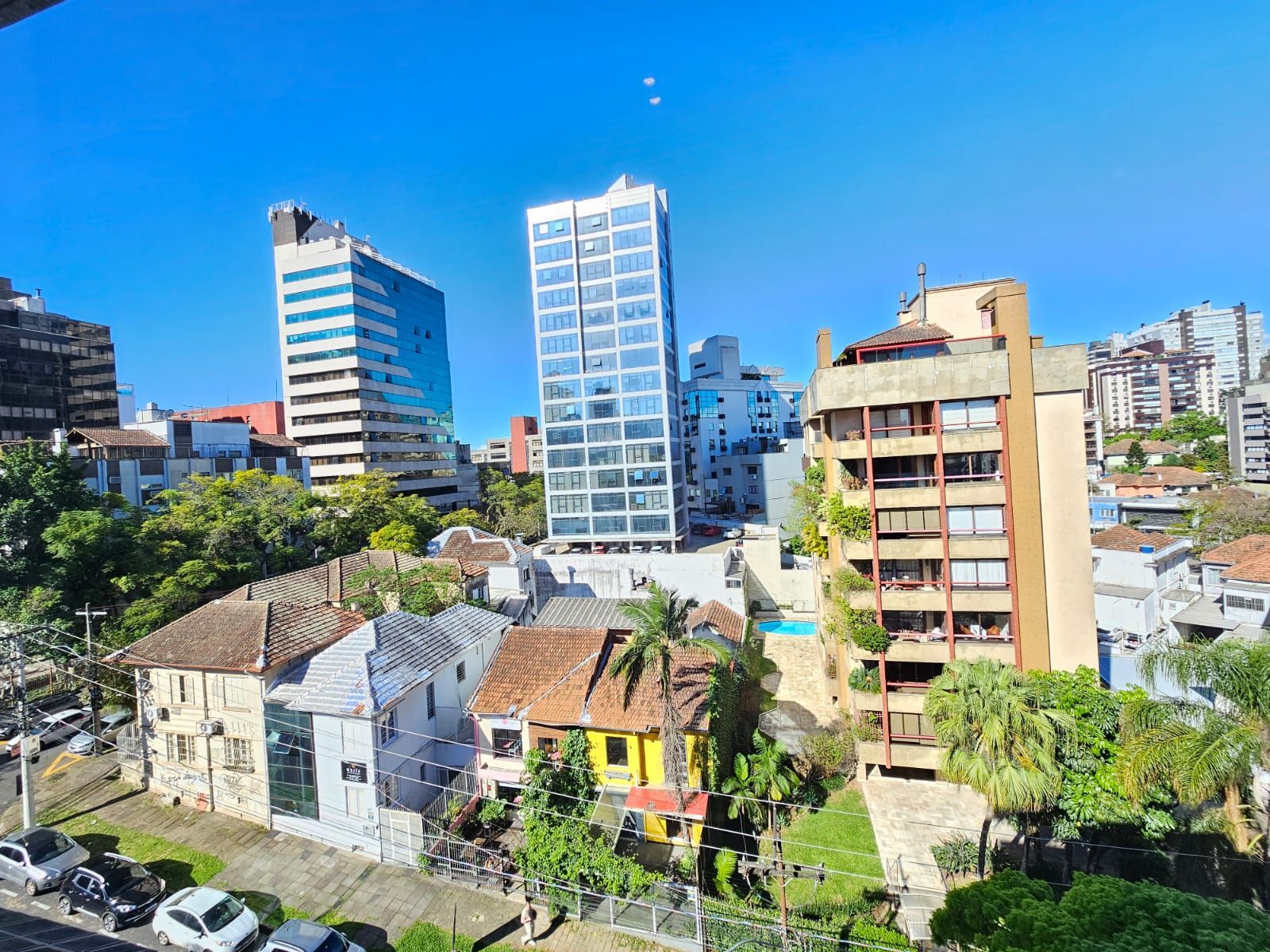 Sala comercial com 33m2, de frente, banheiro e 1 vaga de garagem. Edifício com portaria e elevador.