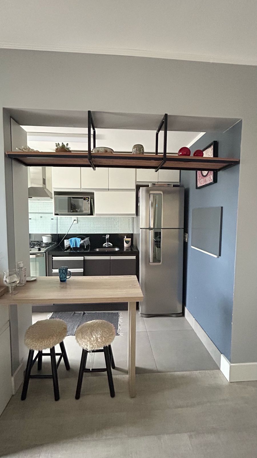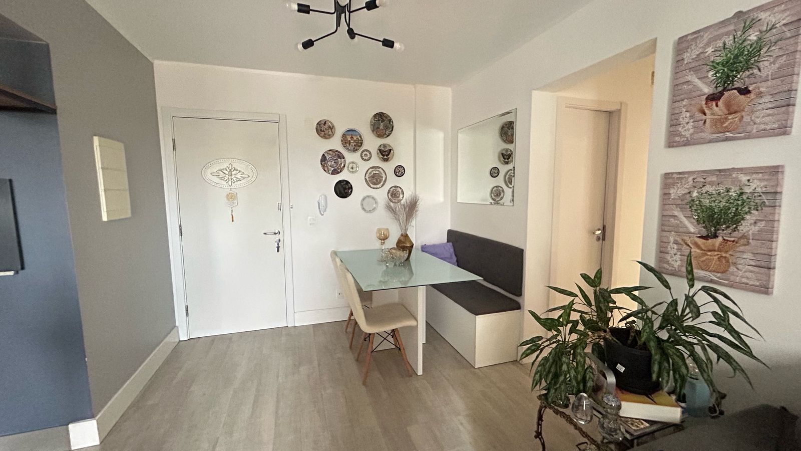 São 2 dormitórios, sendo 1 suíte, living amplo para dois ambientes, banheiro social, cozinha com churrasqueira e área de serviço integrada.