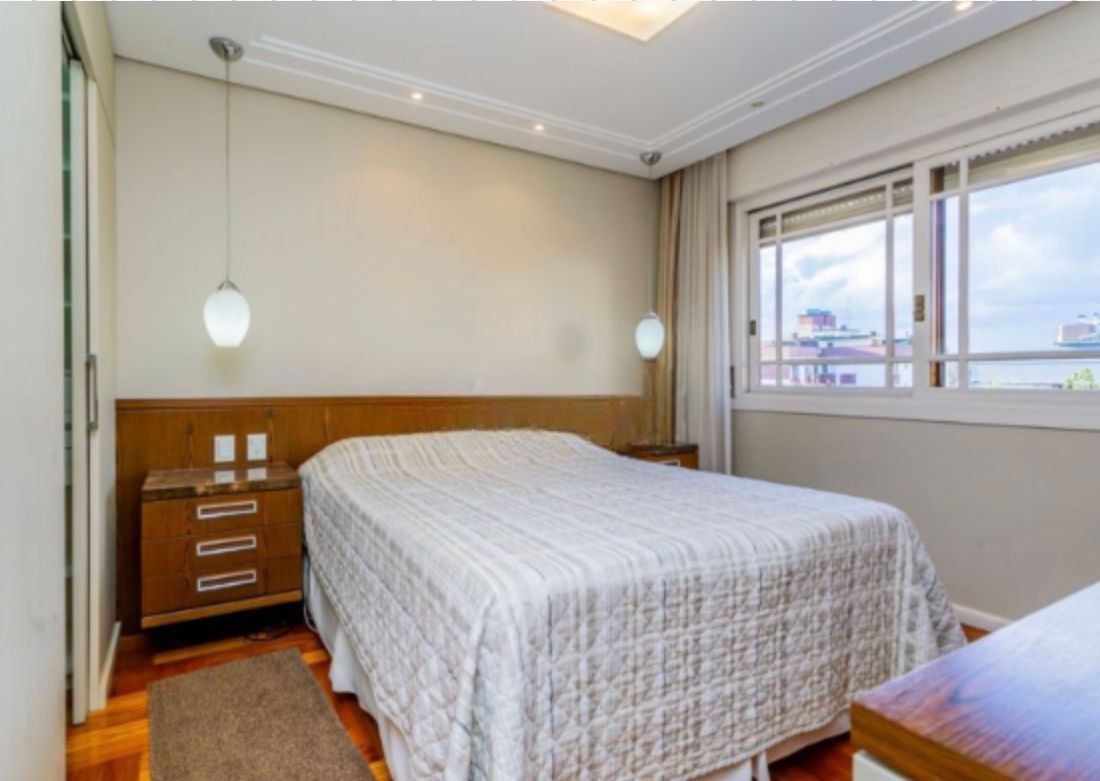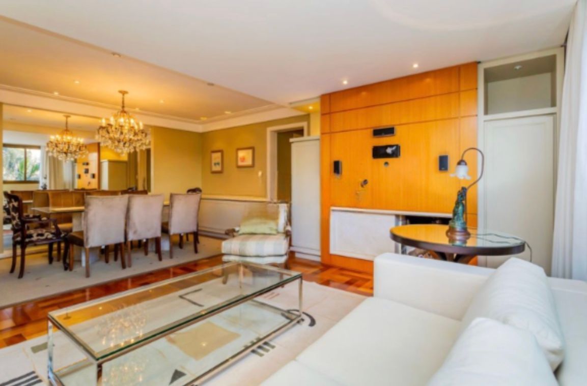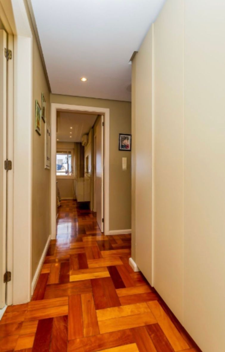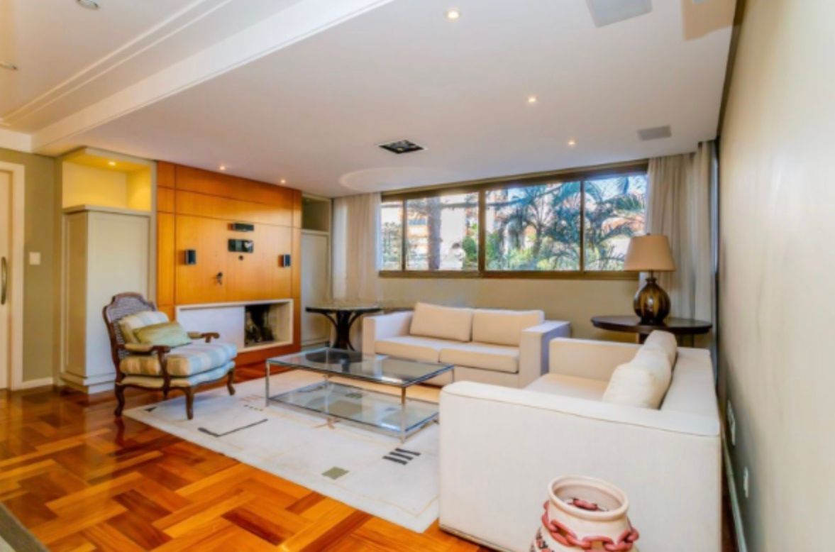 Apartamento com 126,95m², três dormitórios, sendo uma suíte. Finamente decorado e semi-mobiliado, com piso em madeira nobre, banheiros revestidos em mármore e split em todas as peças. O imóvel conta com excelente posição solar, é bem ventilado e possui amplo living para dois ambientes com lareira.