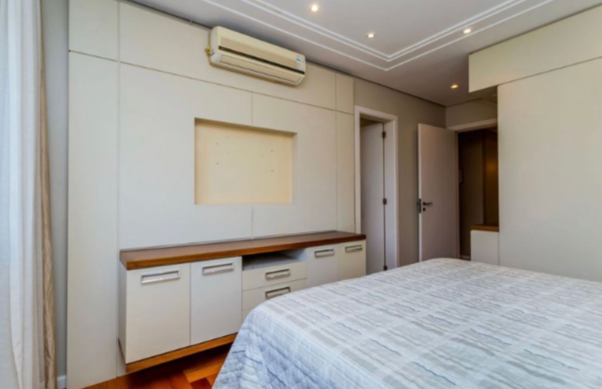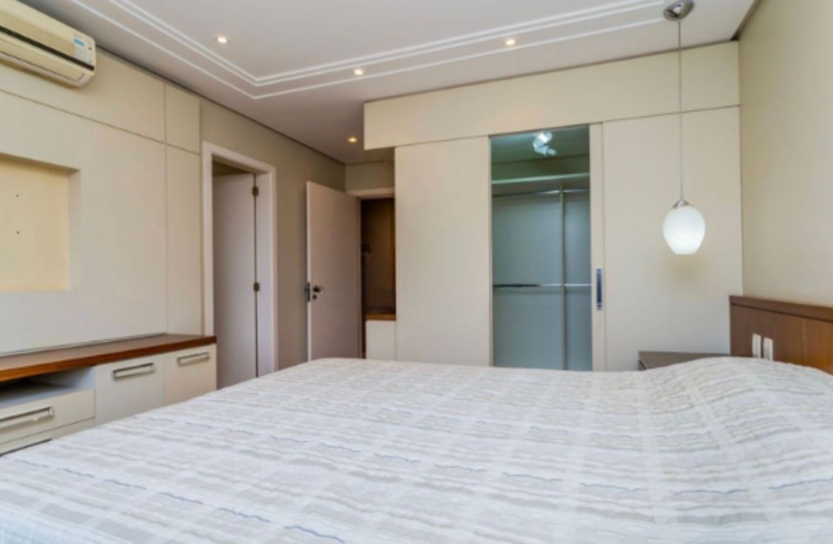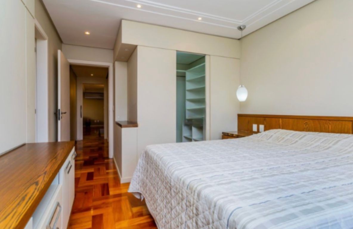 Apartamento com 126,95m², três dormitórios, sendo uma suíte. Finamente decorado e semi-mobiliado, com piso em madeira nobre, banheiros revestidos em mármore e split em todas as peças. O imóvel conta com excelente posição solar, é bem ventilado e possui amplo living para dois ambientes com lareira.