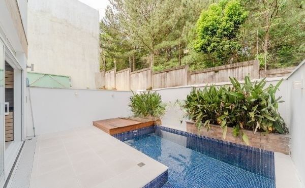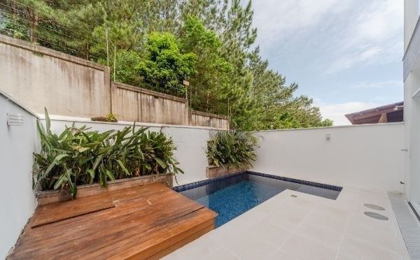 Nos fundos, um pátio amplo com piscina convida para momentos de lazer e relaxamento, em total privacidade e tranquilidade. O acabamento de alto padrão e o paisagismo valorizam ainda mais o charme do imóvel. Agende já a sua visita e venha conhecer pessoalmente!