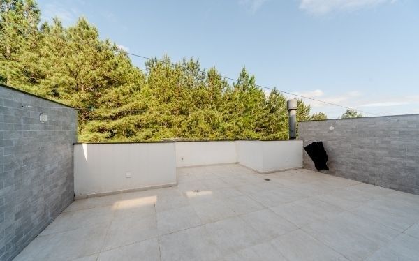 O terraço proporciona uma agradável vista arborizada, ideal para momentos de relaxamento e lazer.
