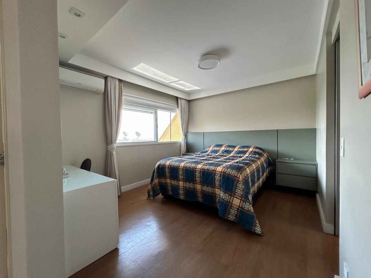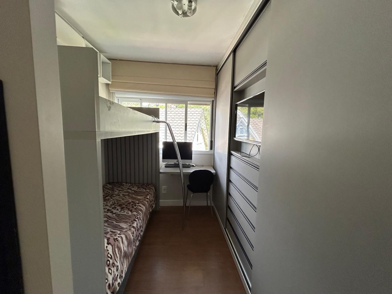 Casa de condomínio com 3 dormitórios, possibilidade de 4 dormitórios, living amplo com lareira, lavabo, cozinha, serviços e um pátio generoso com espaço coberto com churrasqueira.  No pavimento superior os dormitórios, banheiro social, uma suíte ampla com closet e no ultimo pavimento um ambiente de estar íntimo ou escritório e mais um dormitório. Permanecerão no imóvel todos os planejados, aparelhos de ar condicionado instalados e o junker.  Condomínio possui portaria 24:00hs, dois salões de festas, academia, piscinas e vagas de estacionamento para visitantes.