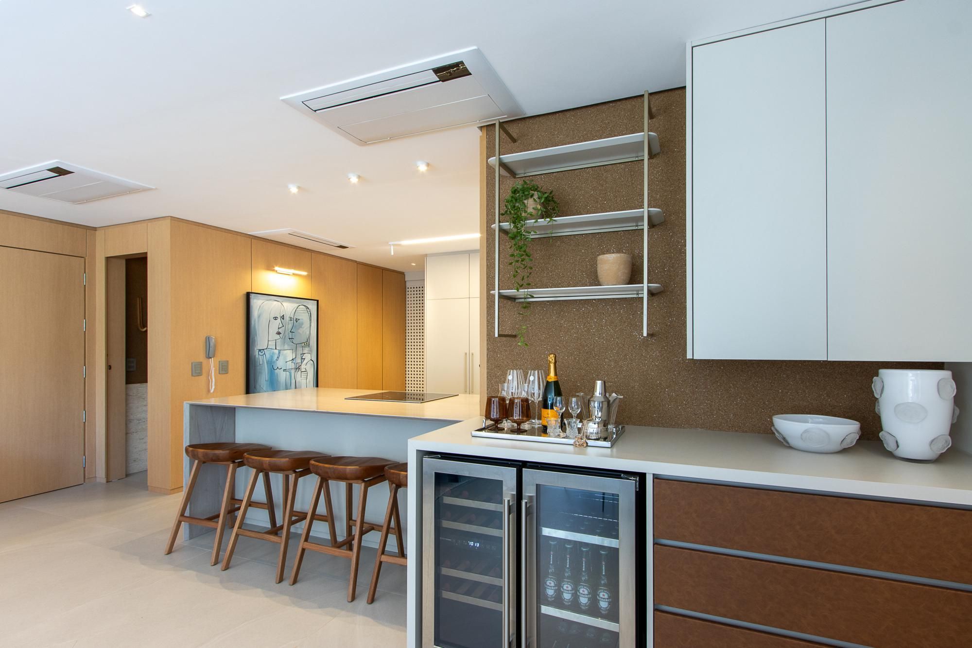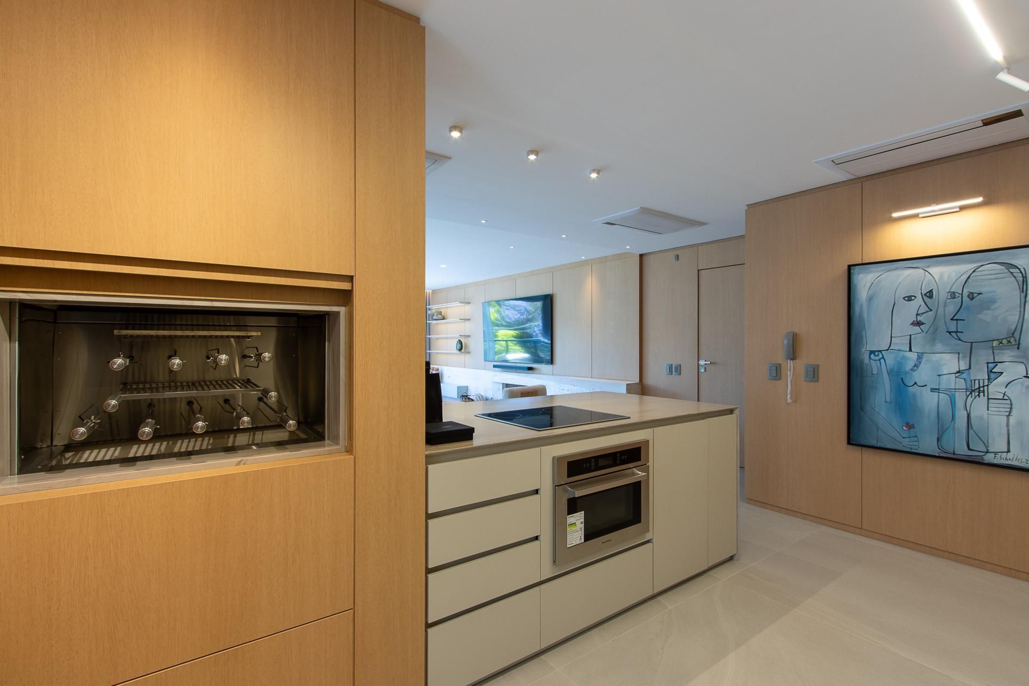 Esse apartamento se resume em elegância e sofisticação, com ambiente clean é super arejado e iluminado. Com móveis assinados e elementos naturais em um design impecável, 100% mobiliado e decorado. A cozinha é equipada com a excelência da marca Eletrotec com geladeira side by side, churrasqueira elétrica, super prática e um incrível espaço para lavanderia. Na área íntima temos duas suítes, a primeira projetada para um espaço de multifunção com bancada para home office. A cereja do bolo é a suíte master com 70m², e 2 banheiros pro casal, piso aquecido em todos os banheiros, uma banheira spa para relaxar e um closet boutique para abrilhantar o esse espaço.