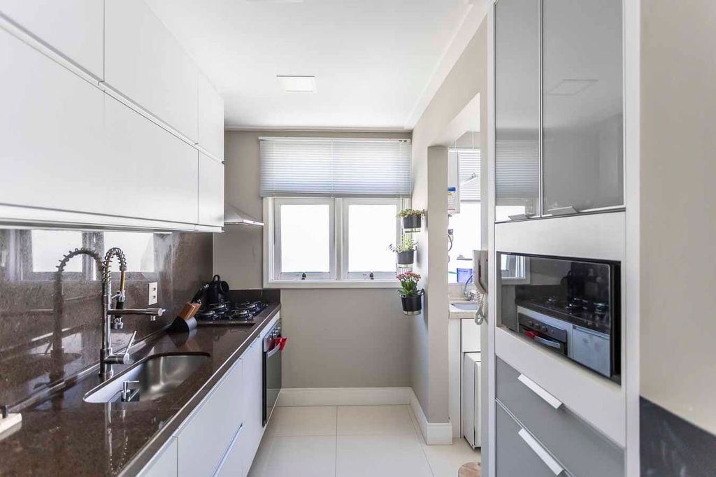 O condomínio com salão de festas, elevador, jardim, localizado próximo de escolas e de todas as conveniências do bairro.
