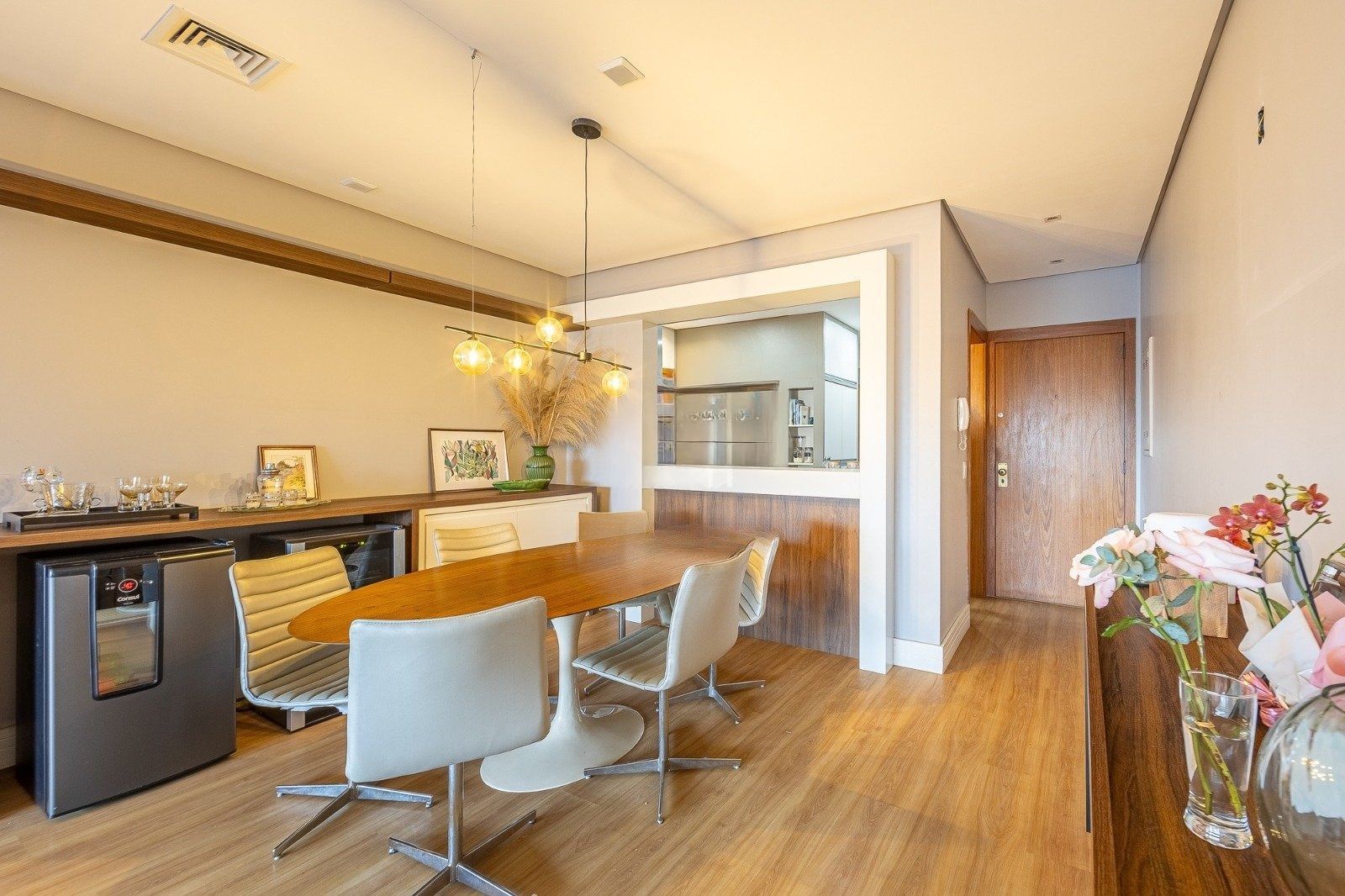 O terceiro dormitório foi inteligentemente integrado, transformando-se em uma aconchegante sala de TV e ampliando ainda mais a área social — e, se você preferir, a reversão para o layout original é simples e rápida.