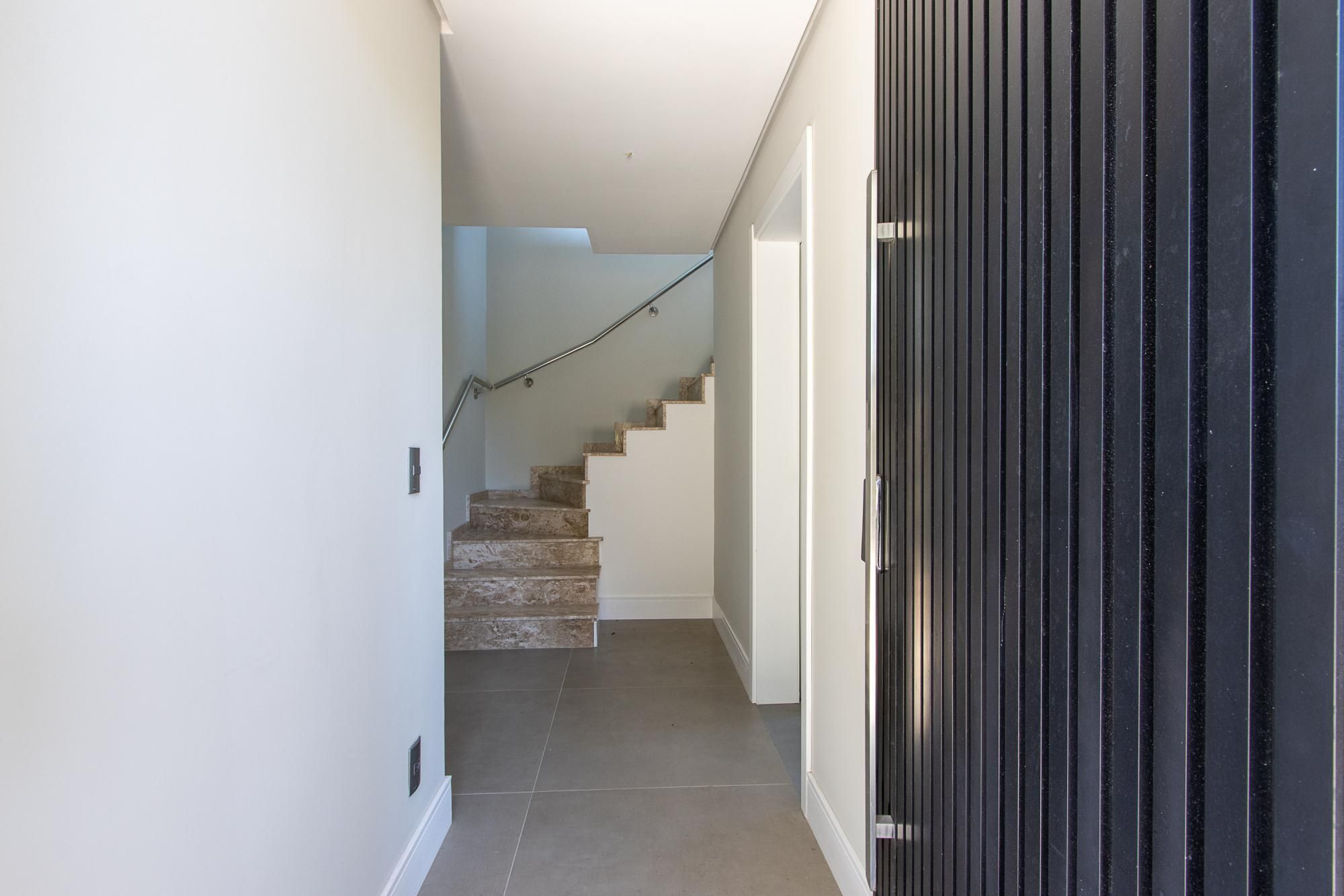 No térreo: pátio privativo, garagem com vaga para 2 veículos, lavanderia e banheiro de serviço, fechadura digital com abertura por senha e/ou token, esquadrias em alumínio ripado na porta de entrada e portão de garagem.
