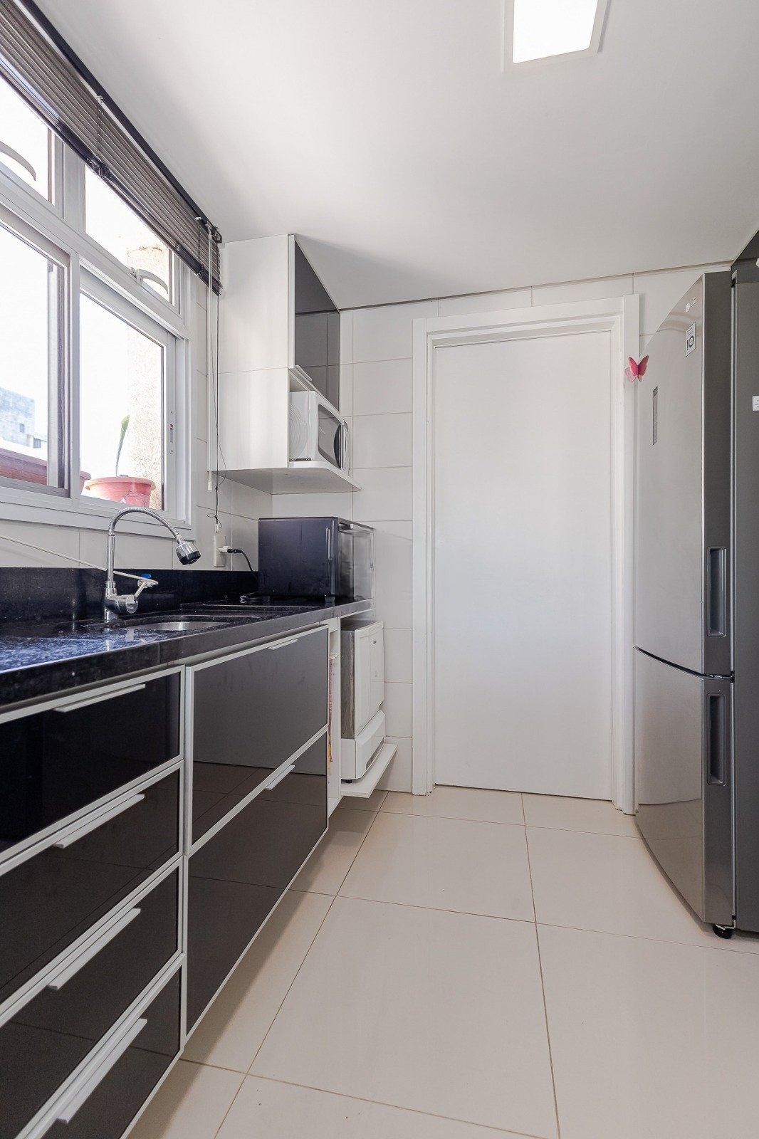 Condomínio conta com salão de festa com espaço lounge, elevador e zelador.