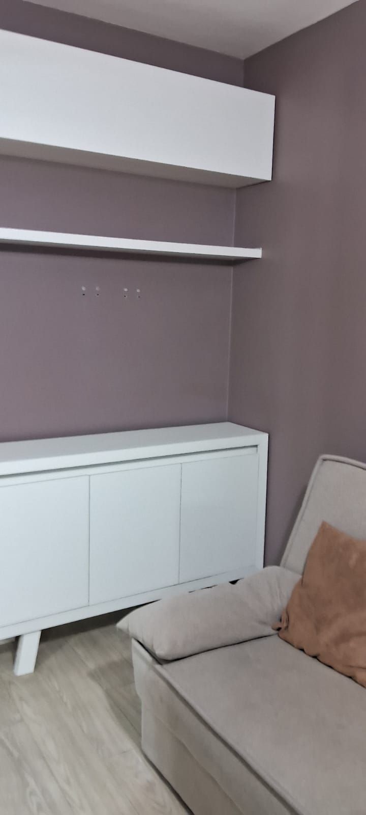 O apartamento possui móveis planejados de alto padrão na cozinha, banheiro e dormitórios, sendo entregue semi-imobiliado. Permanecem no imóvel a cozinha completa com móveis sob medida, geladeira, forno profissional e cooktop, além de ar-condicionado, sofá-cama e estrutura de cama planejada com gavetas inferiores, oferecendo ótimo aproveitamento de armazenamento. O segundo dormitório conta com cama baú, escrivaninha e armário planejado, integrado ao corredor como uma parede funcional.
