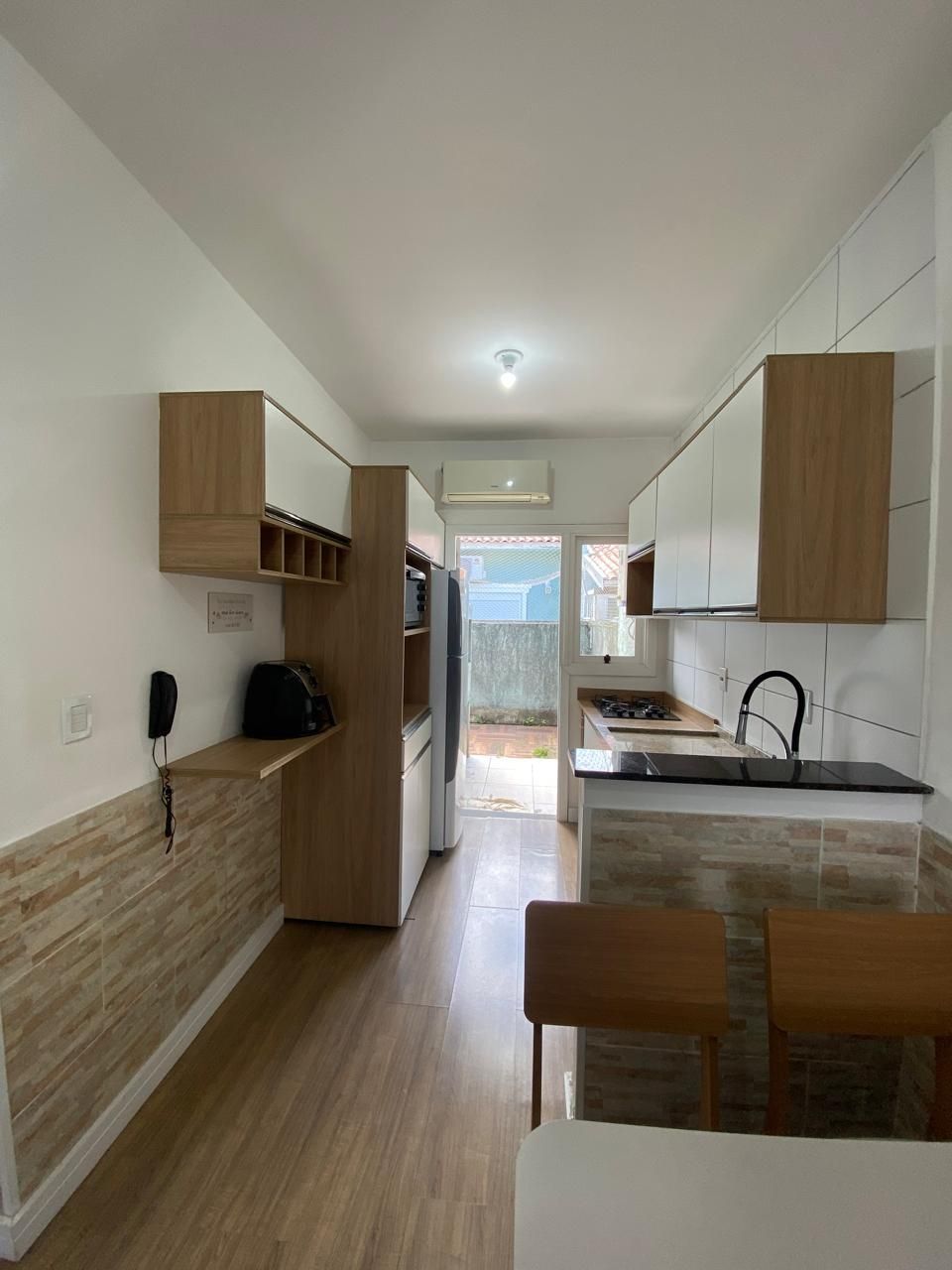 Ao entrar, você será recebido por um ambiente acolhedor e bem iluminado. A cozinha americana, equipada com armários, proporciona praticidade no dia a dia. O aquecimento a gás e o ar condicionado garantem o conforto térmico em todas as estações, enquanto a churrasqueira e o pátio são ideais para momentos de lazer e descontração.