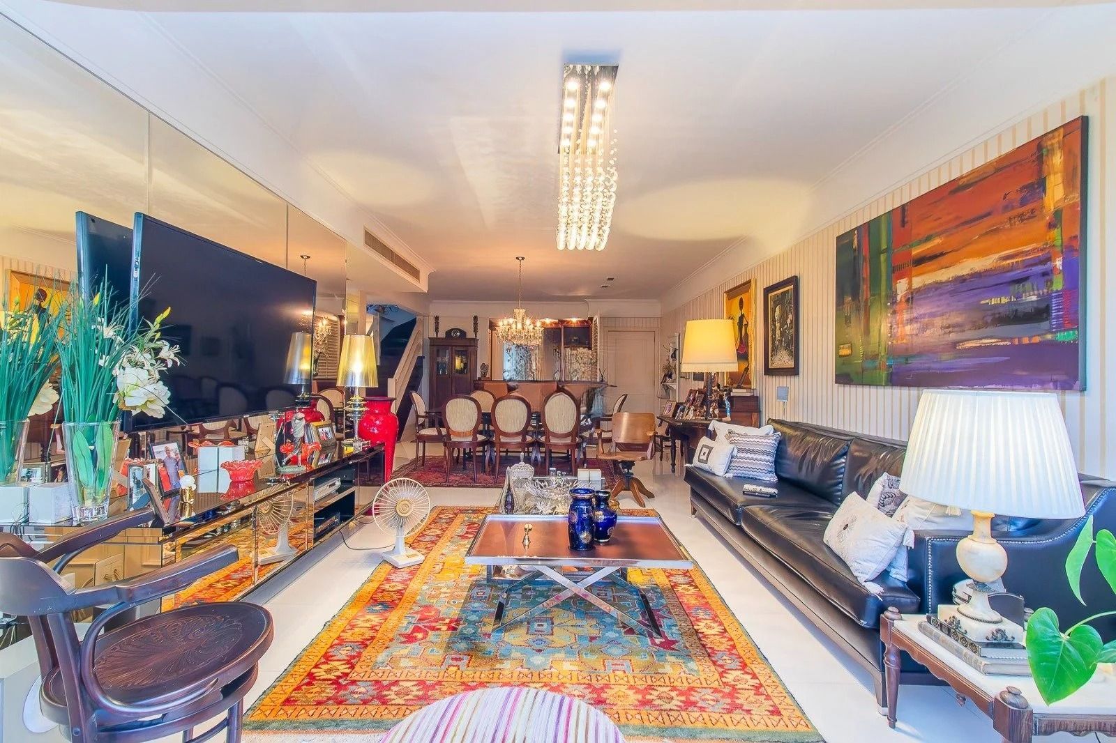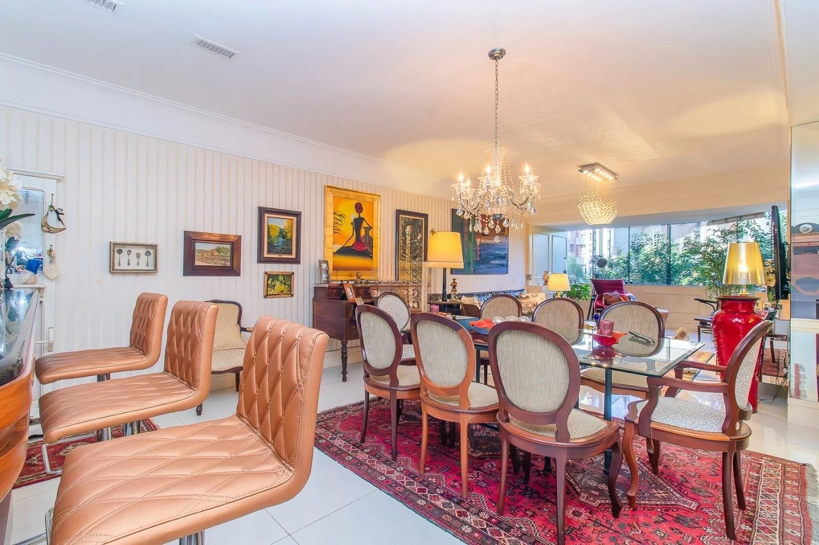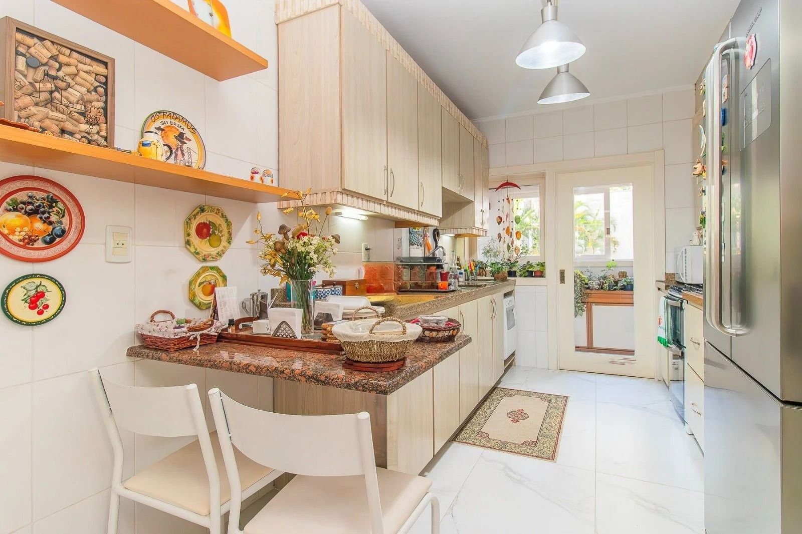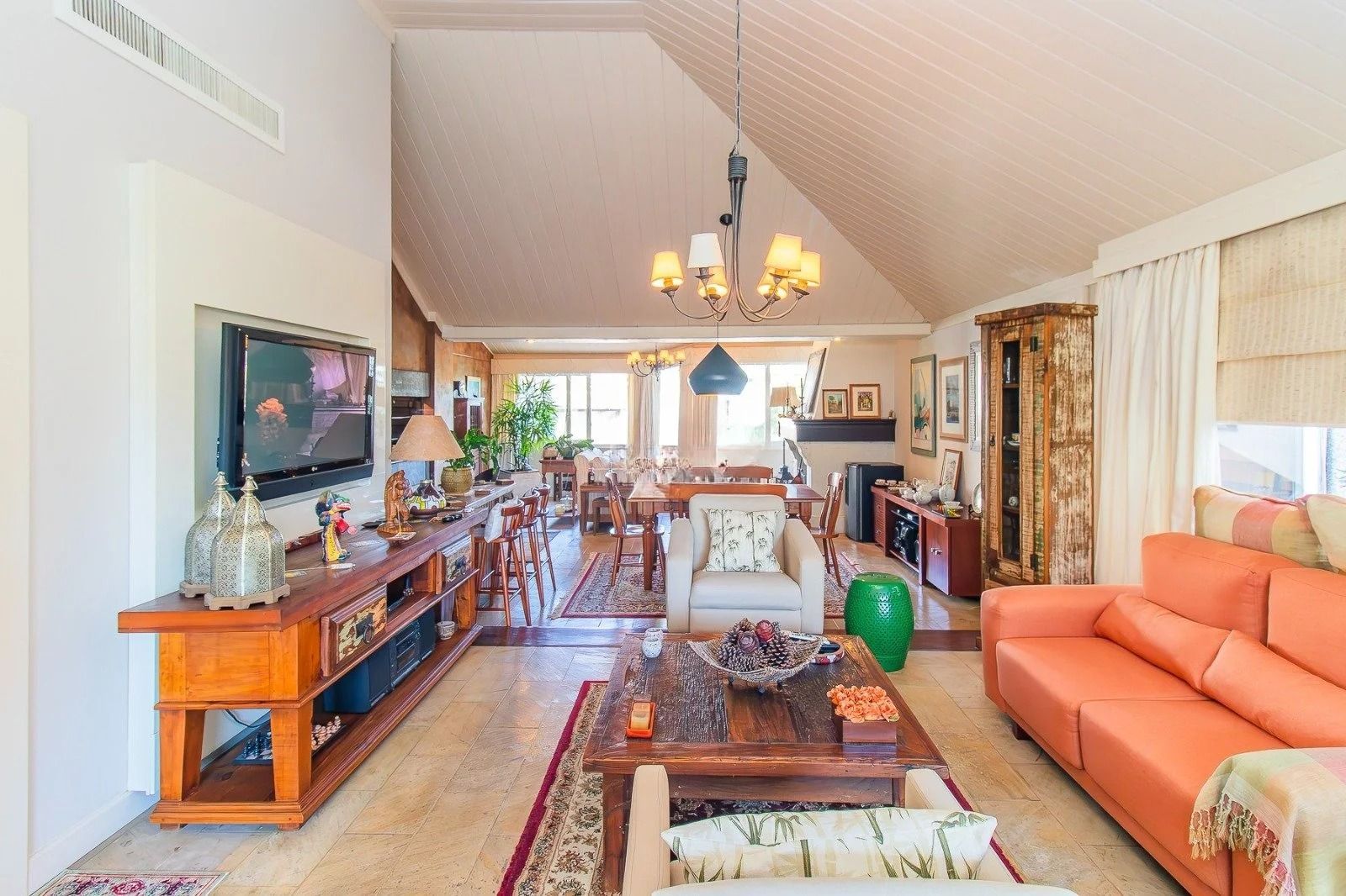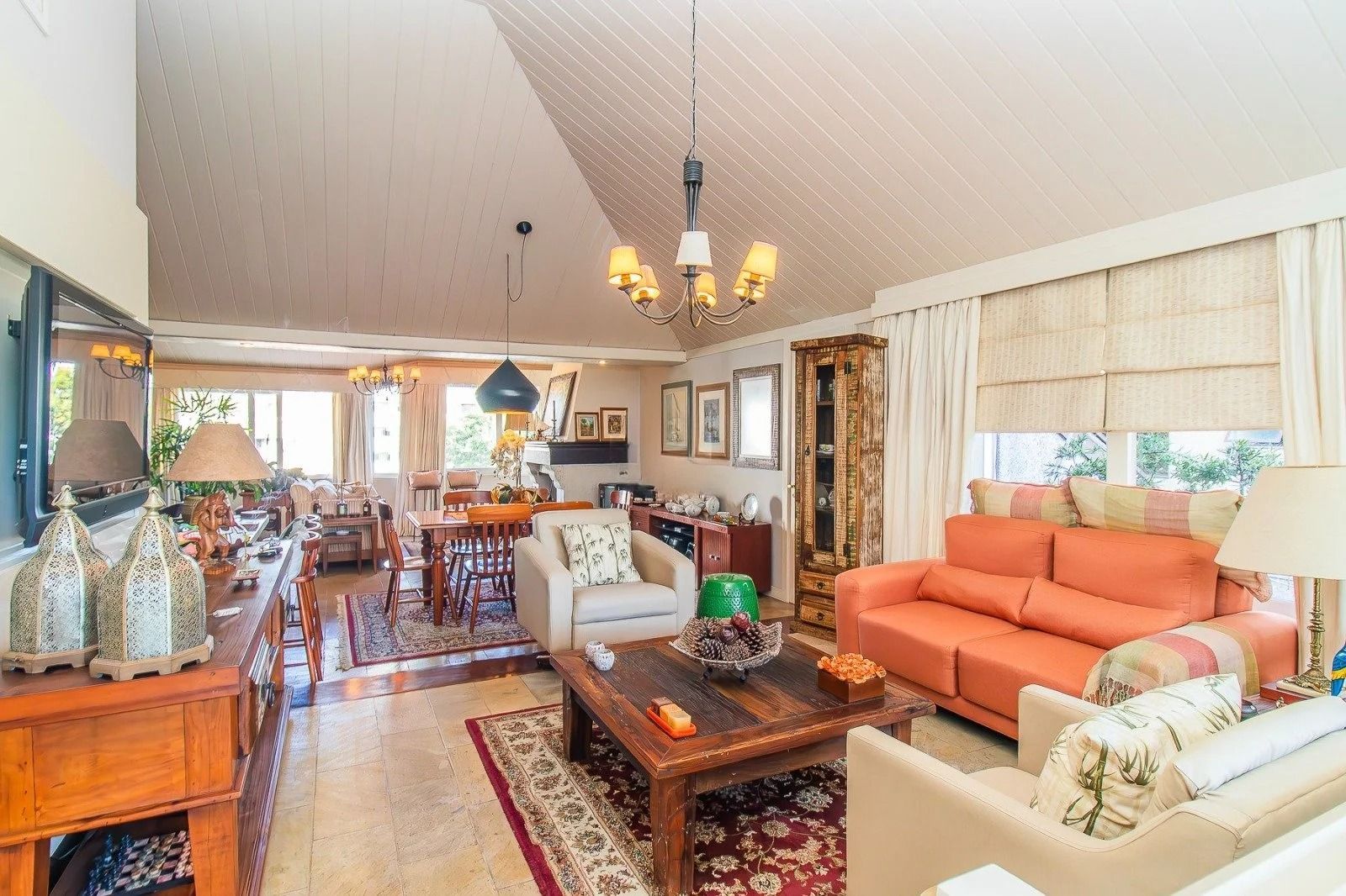 No andar inferior: 4 dormitórios, sendo 1 suíte master com closet. Banheiro social, sala de estar e jantar integradas, com janelas amplas que garantem excelente iluminação natural e ventilação cruzada. Cozinha funcional, com área de serviço separada e banheiro adicional. Adega para armazenar seus vinhos com elegância. 3 vagas de garagem cobertas, oferecendo praticidade e segurança.