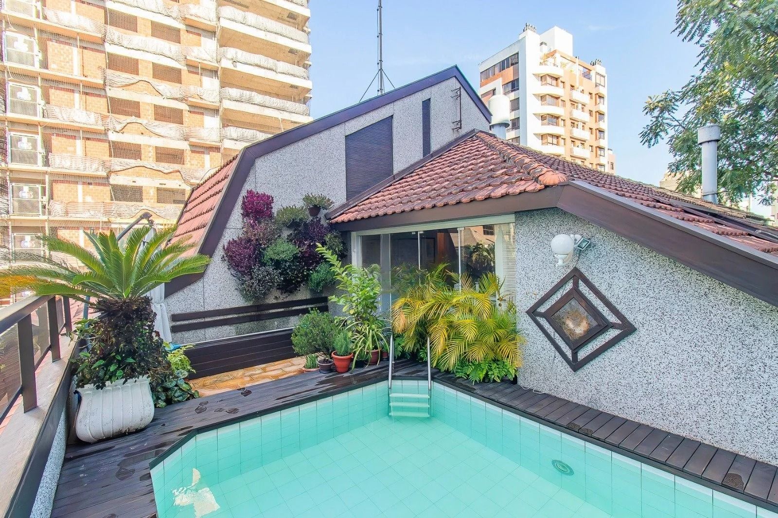Na parte externa: uma espaçosa piscina, perfeita para aproveitar os dias ensolarados.